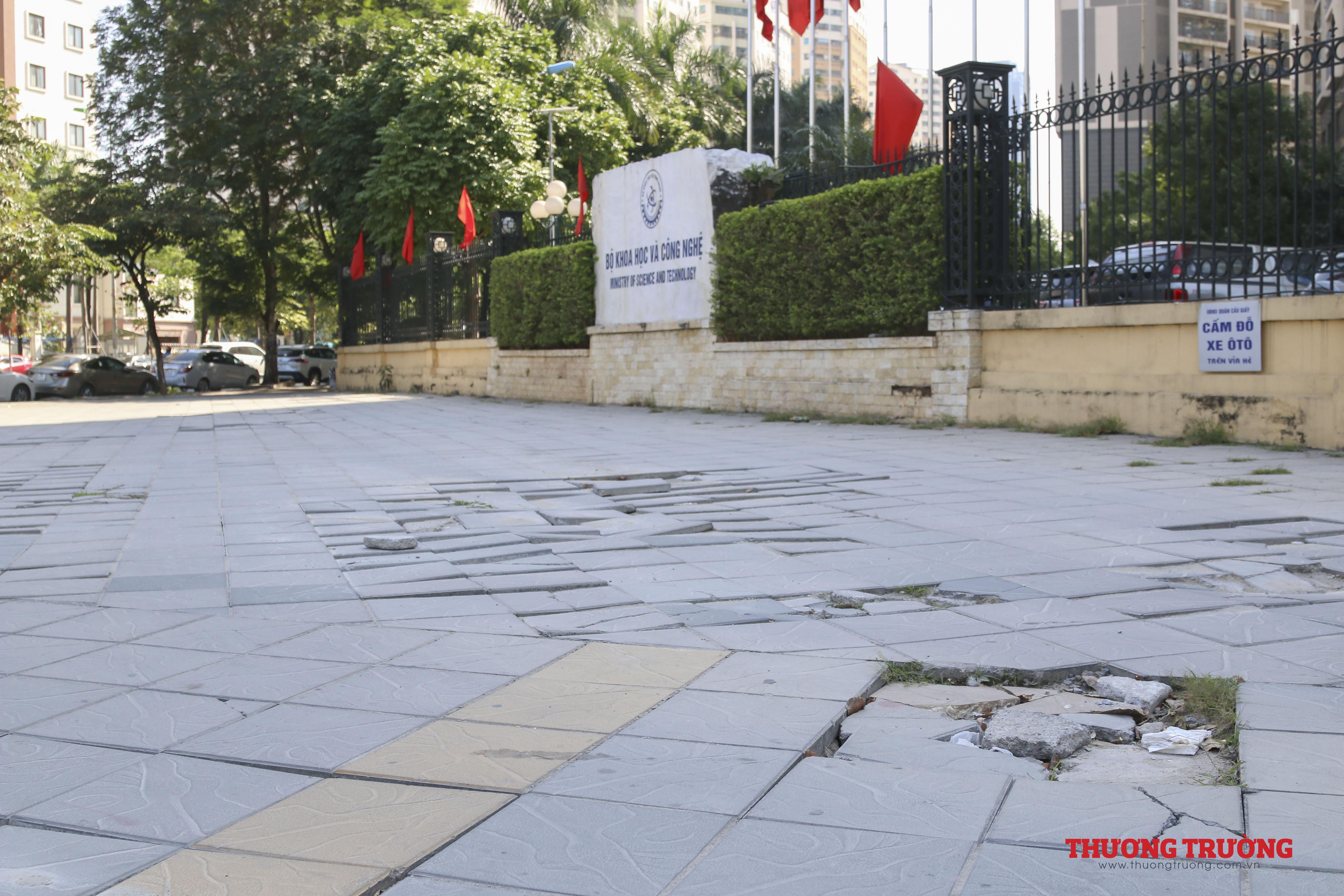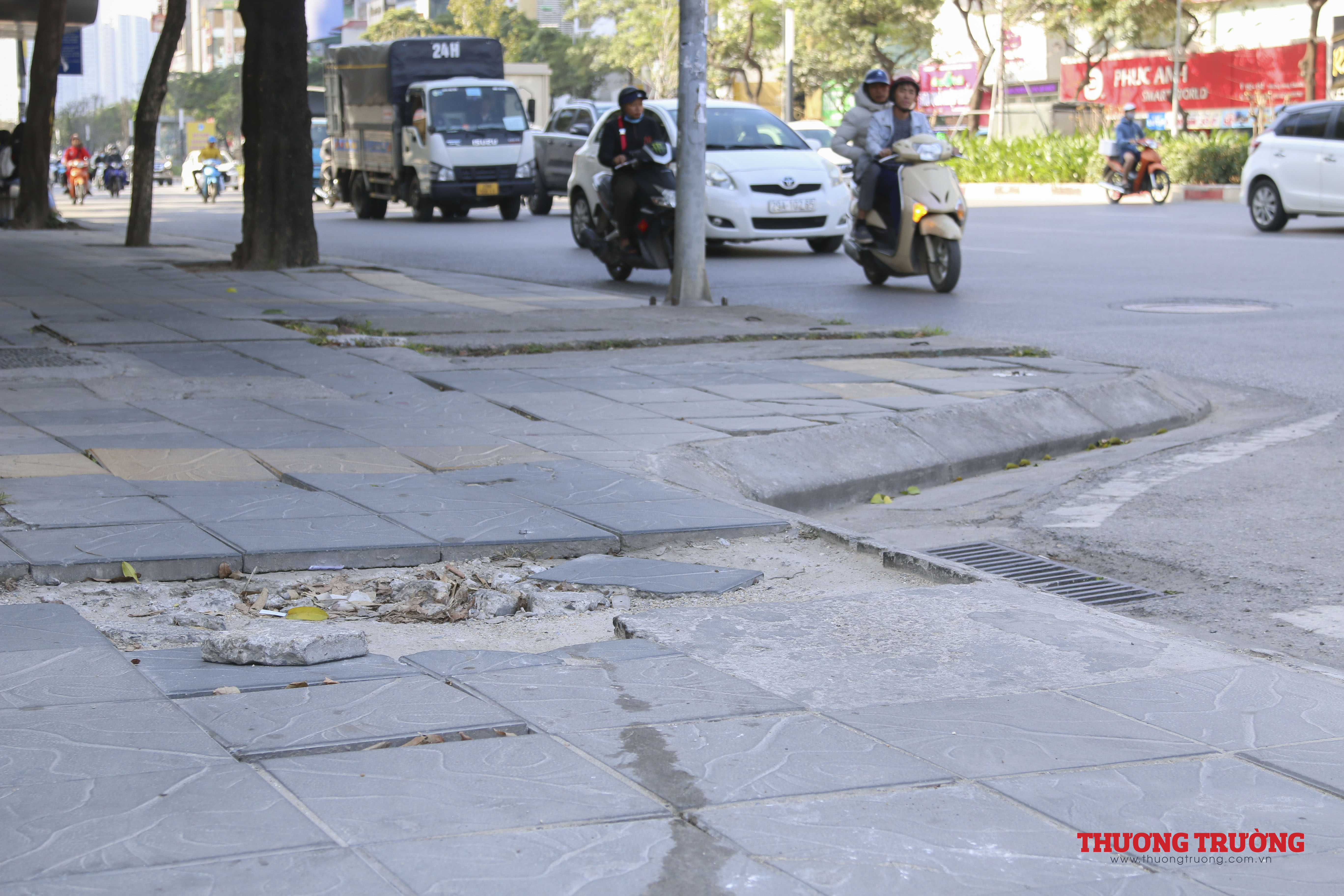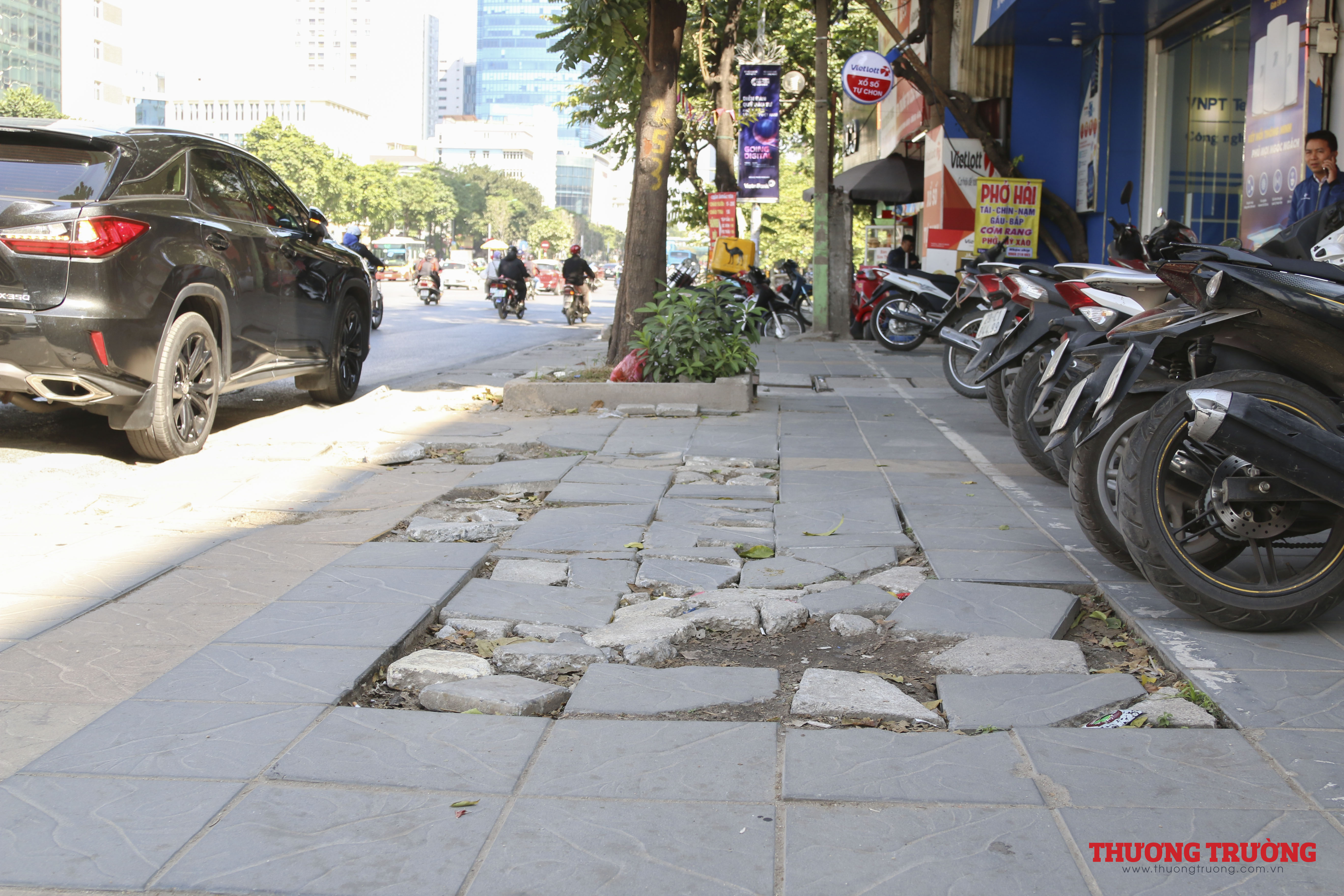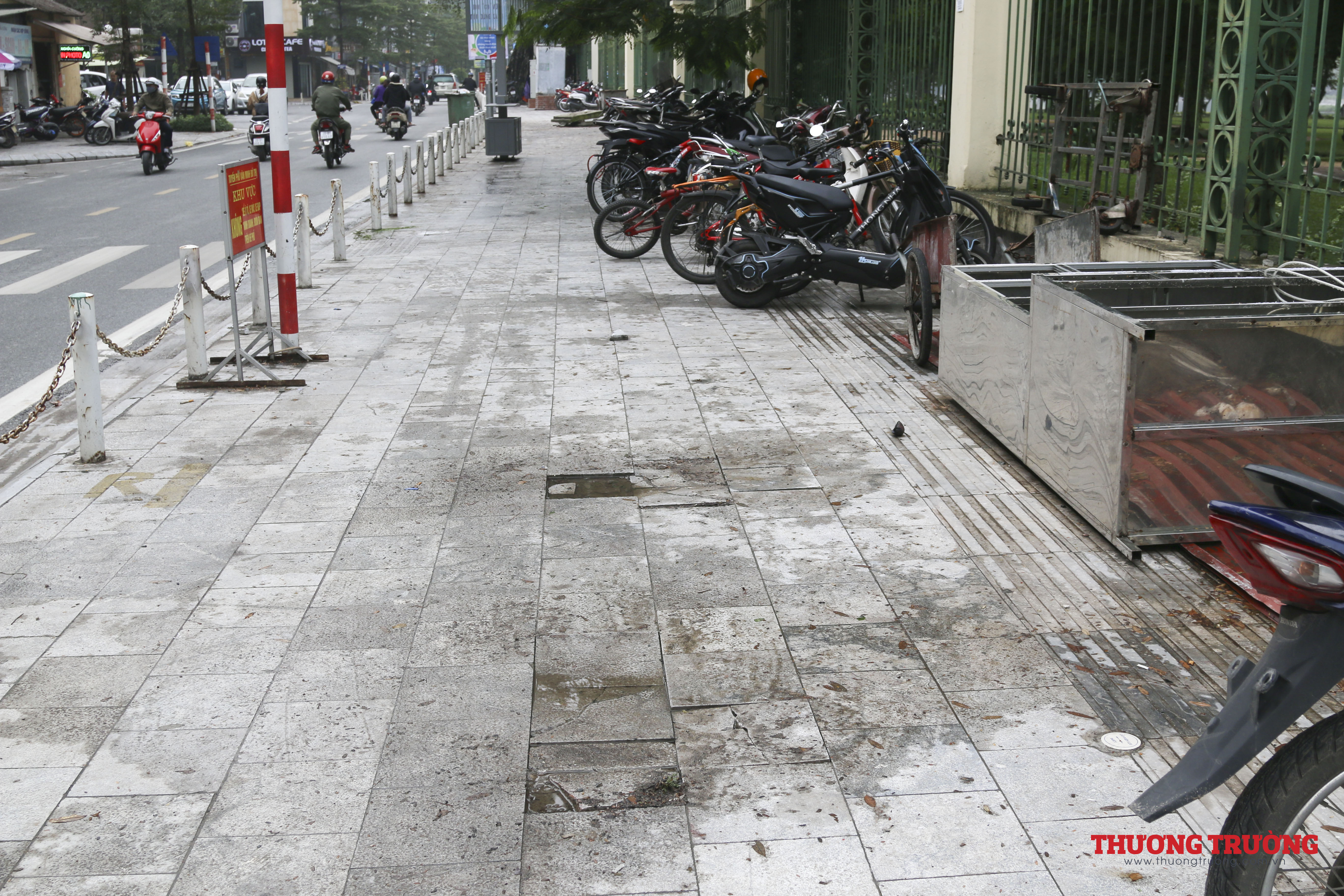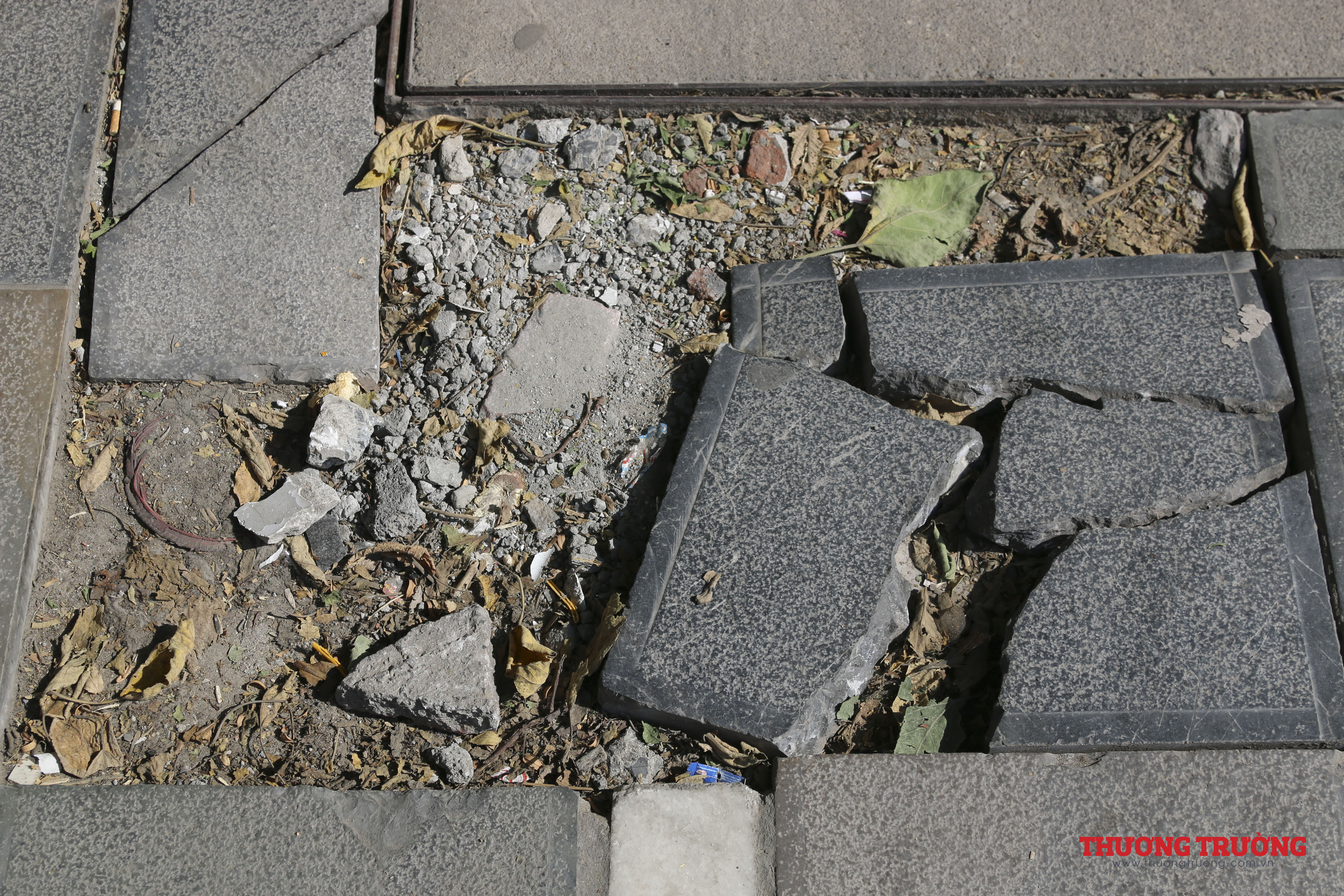 Nhiều đoạn vỉa hè đã xuống cấp nghiêm trọng, các mảng đá lát vỉa hè nứt vỡ, bong tróc... tạo nên cảnh nhếch nhác, thiếu mỹ quan.