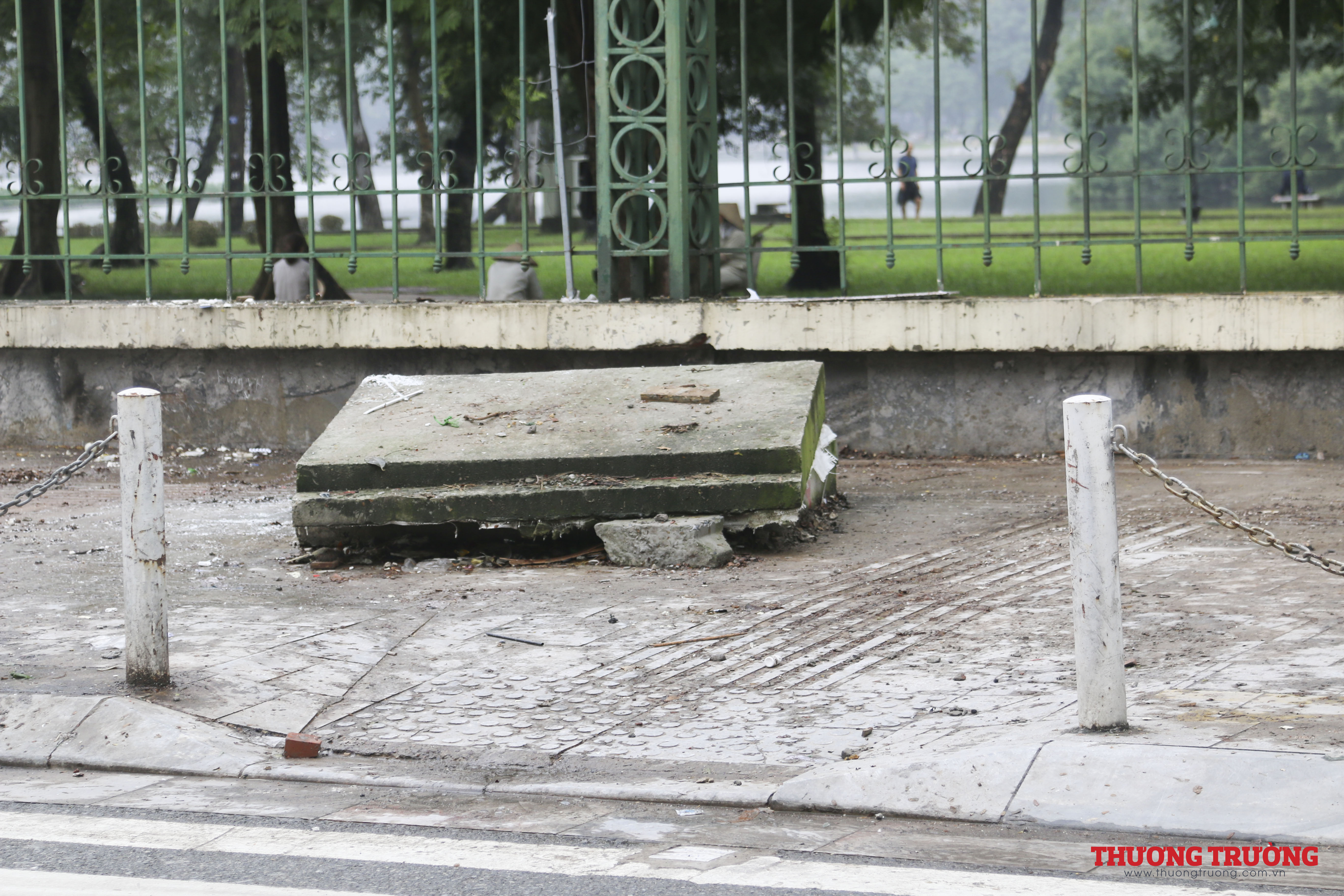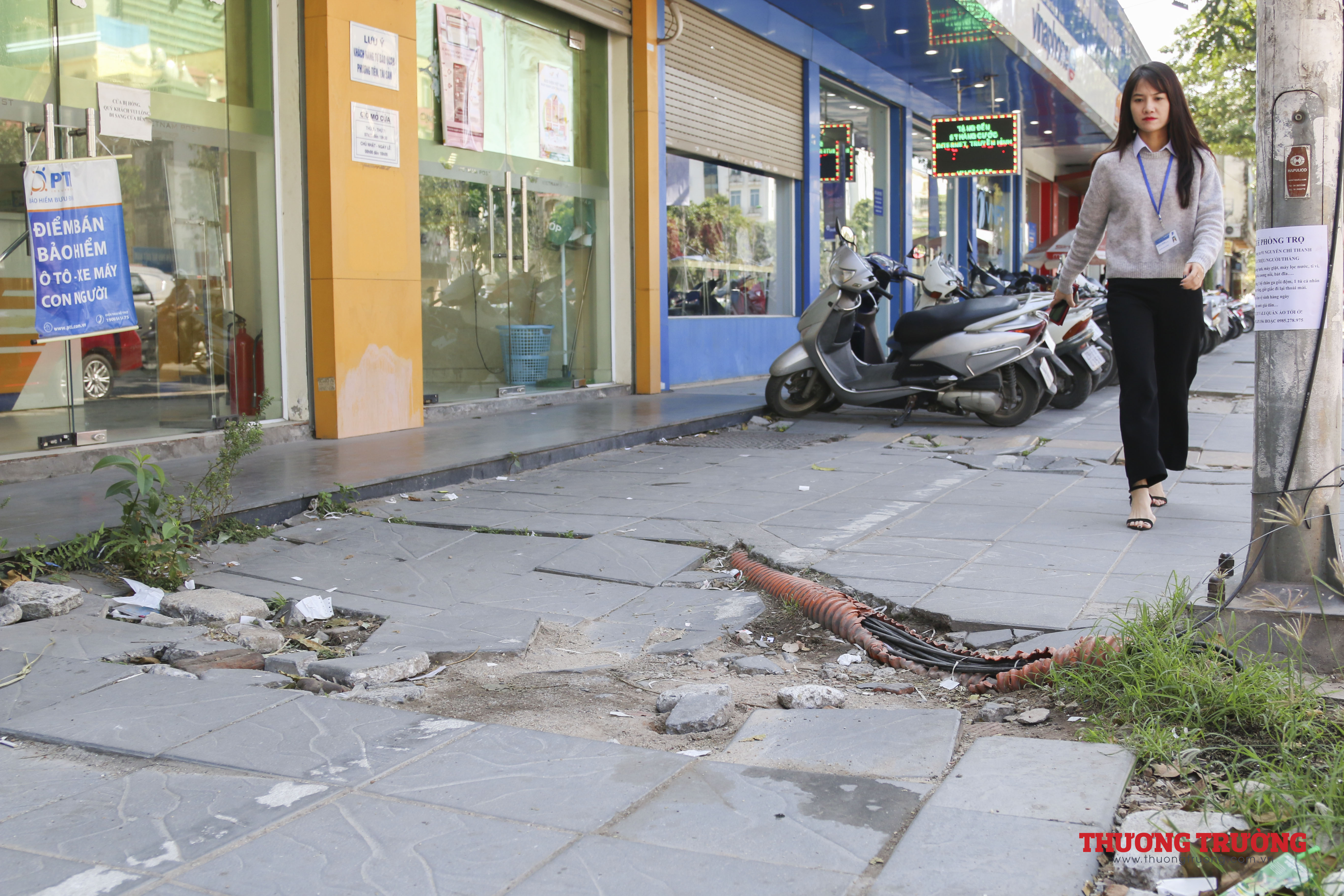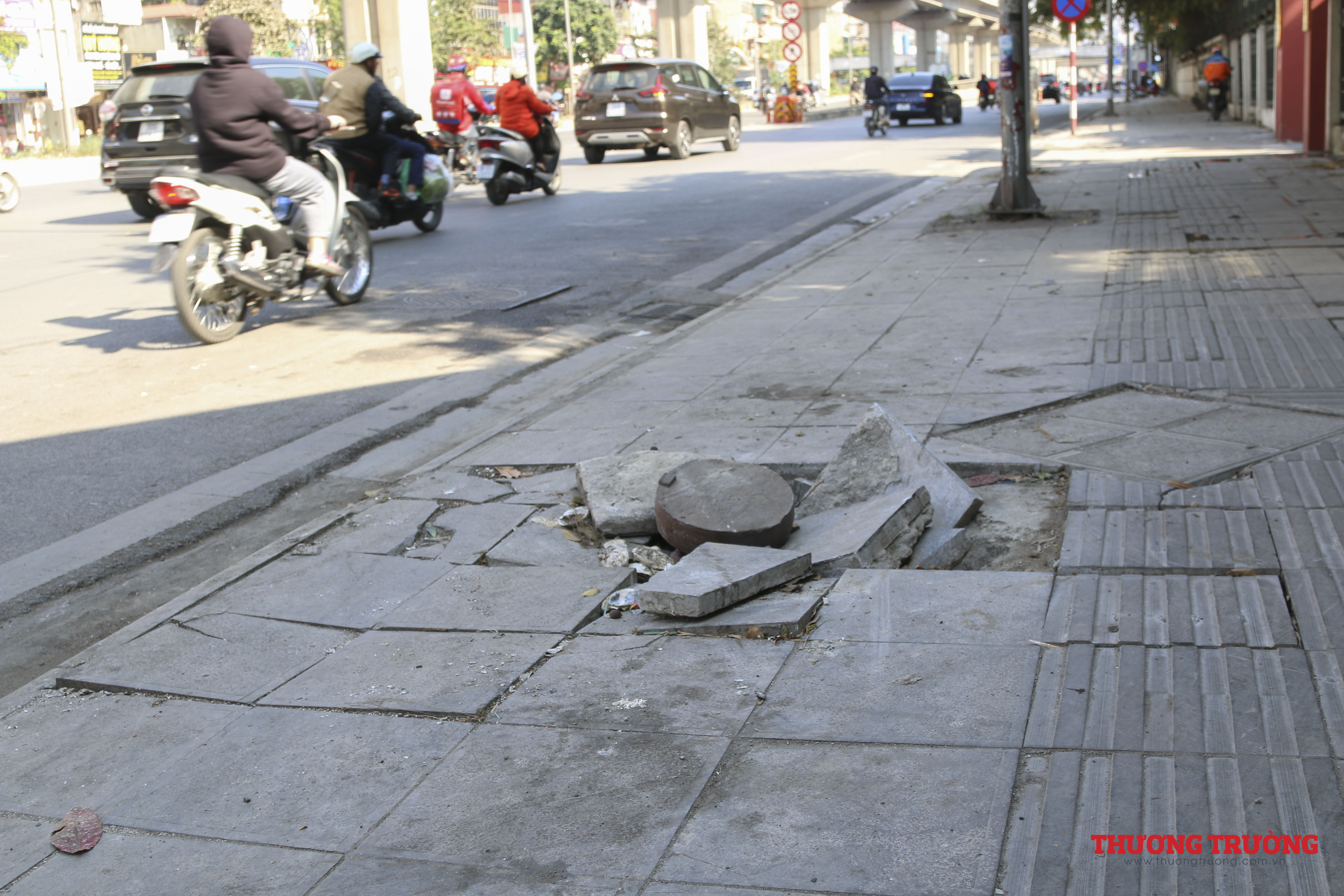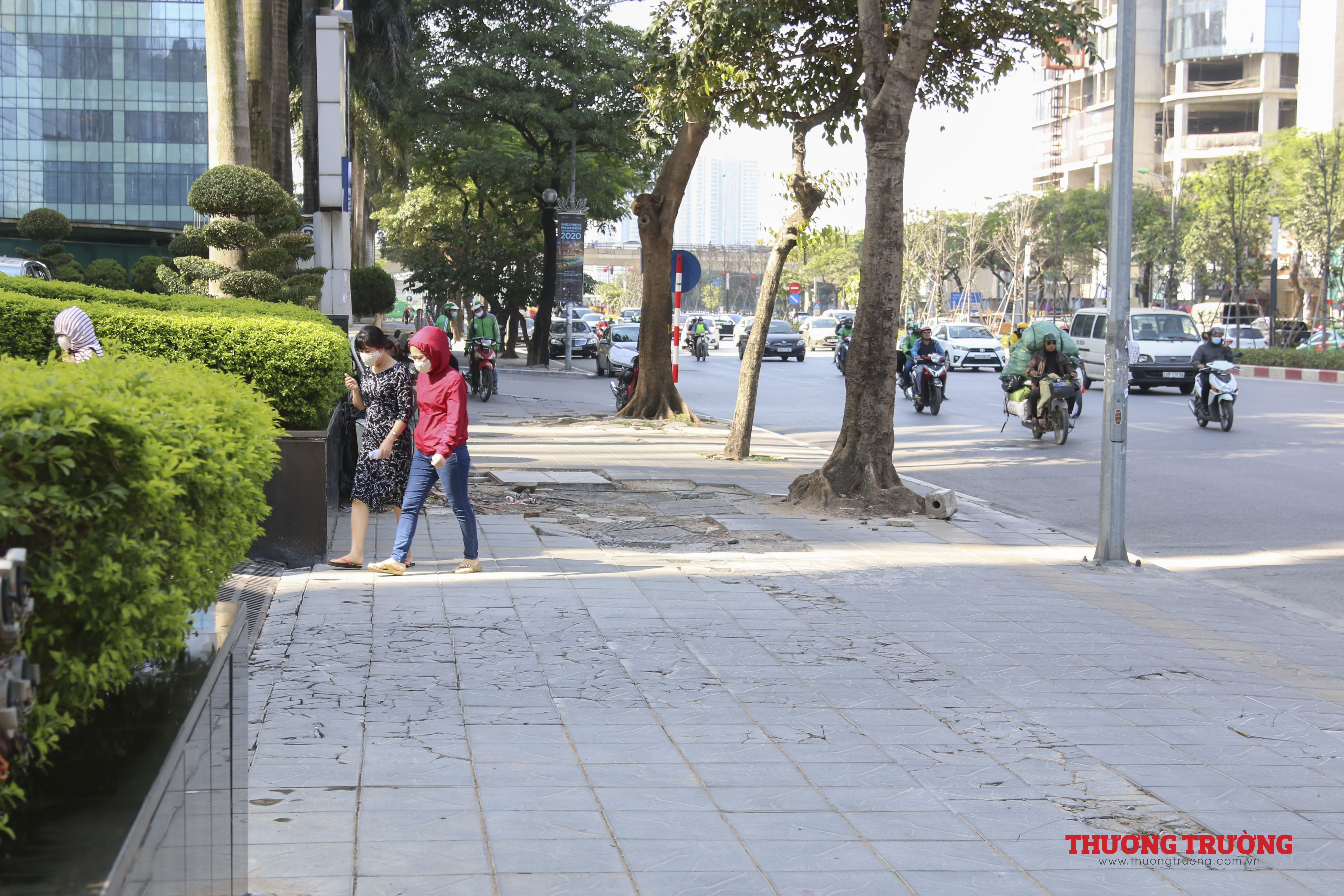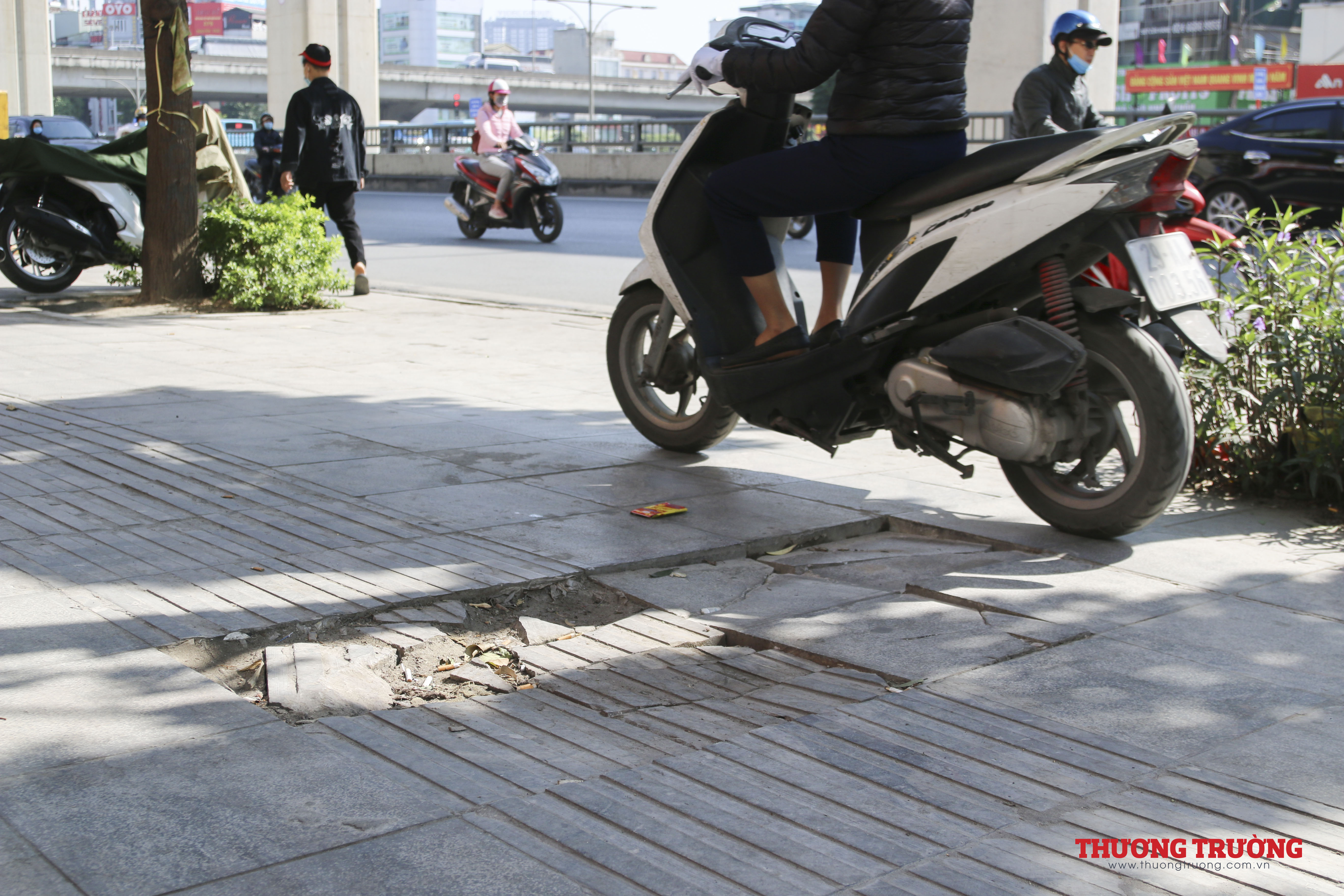 Người đi bộ trên vỉa hè khá khó khăn, khi phải đi qua vỉa hè lởm chởm, với các hố, lồi lõm này. Khó ai có thể tin được đá được lát vỉa hè ở đây được giới thiệu có độ bền 70 năm, chỉ sau khoảng hơn 3 năm đã vỡ nát.