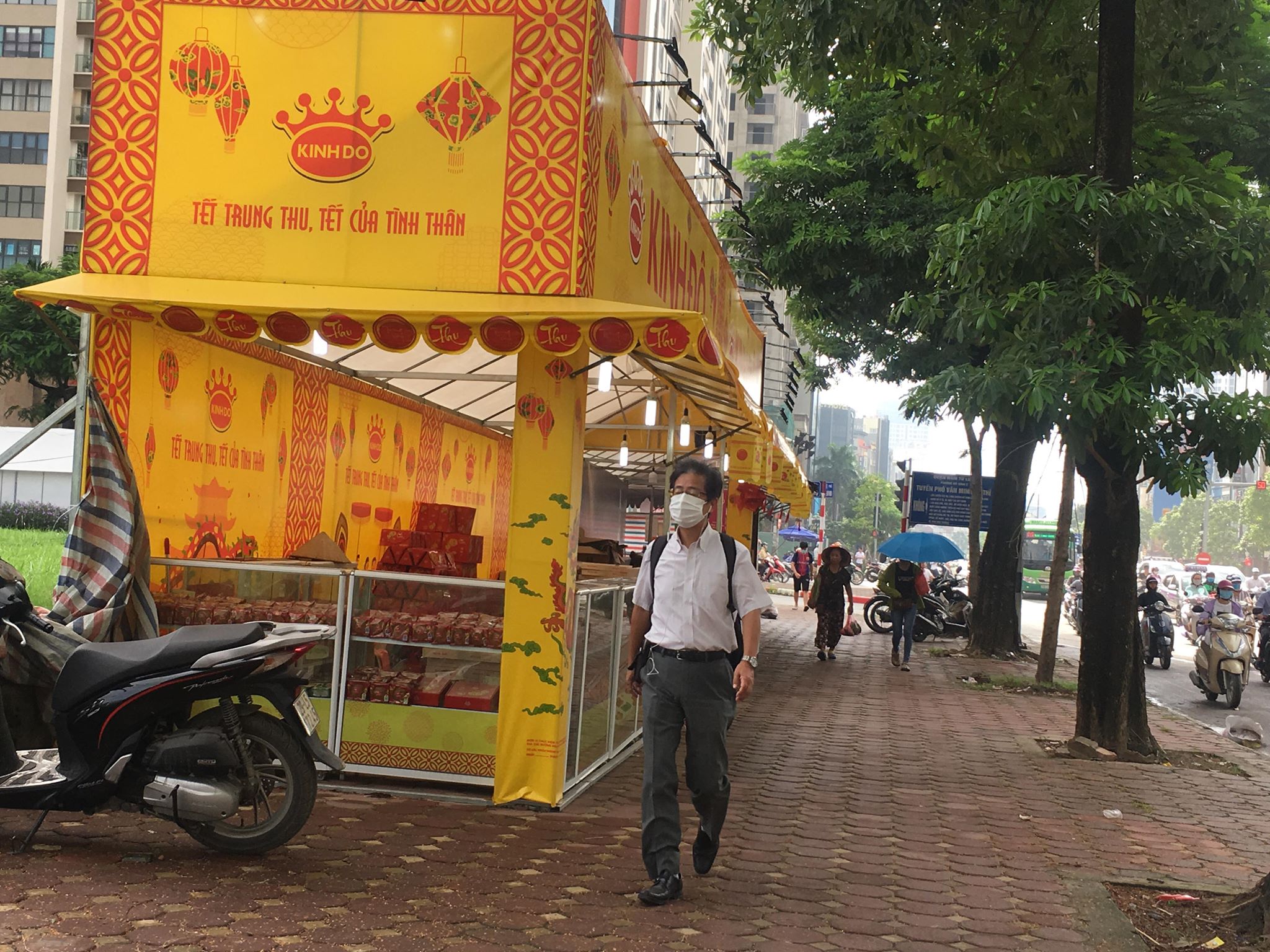 Trên các tuyến đường Phạm Văn Đồng, Nguyễn Hoàng, Mễ Trì, Xuân Thủy, Nguyễn Chí Thanh, Kim Mã,...PV ghi nhận được tình trạng lấn chiếm vỉa hè từ các quầy bánh trung thu khá phổ biến.