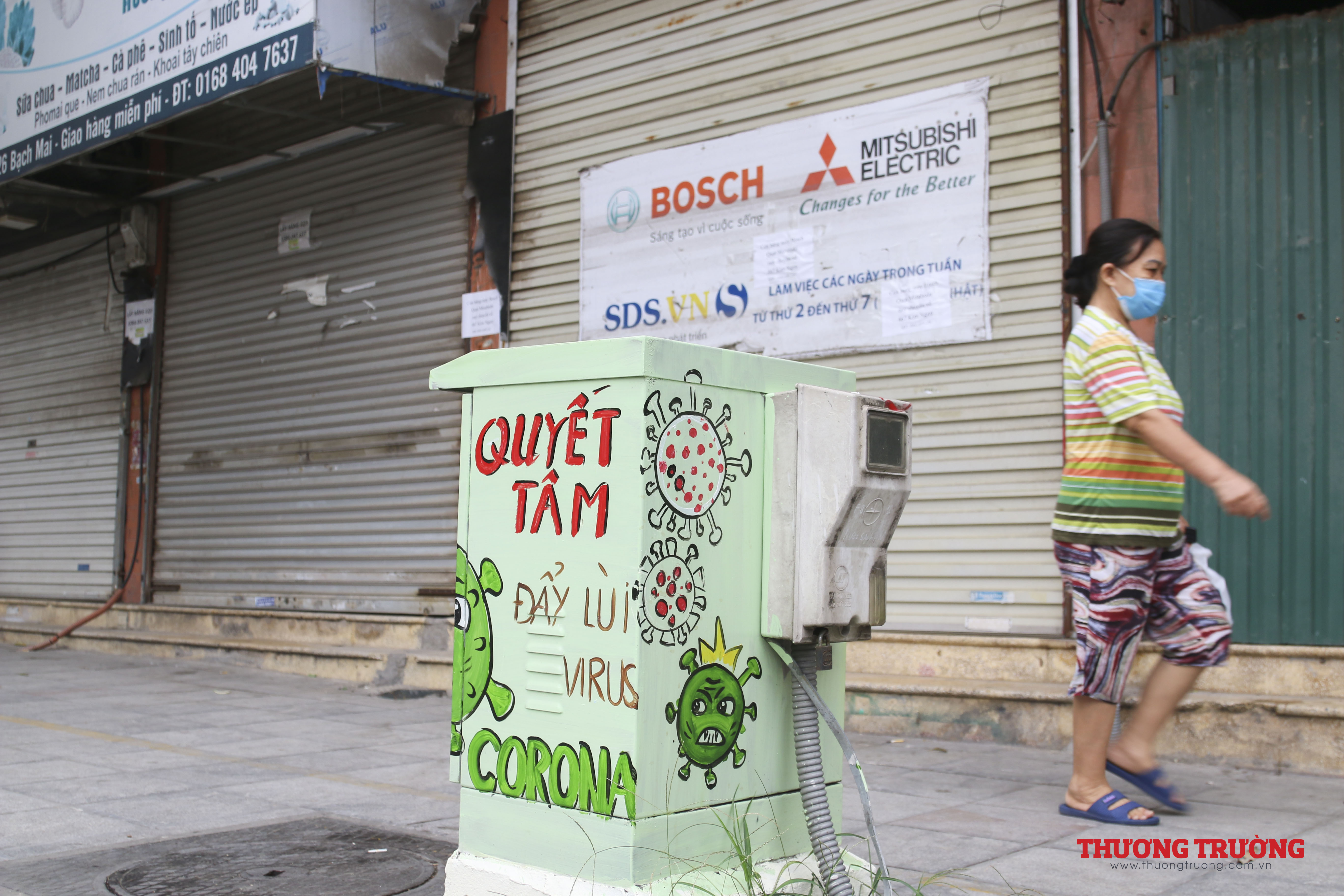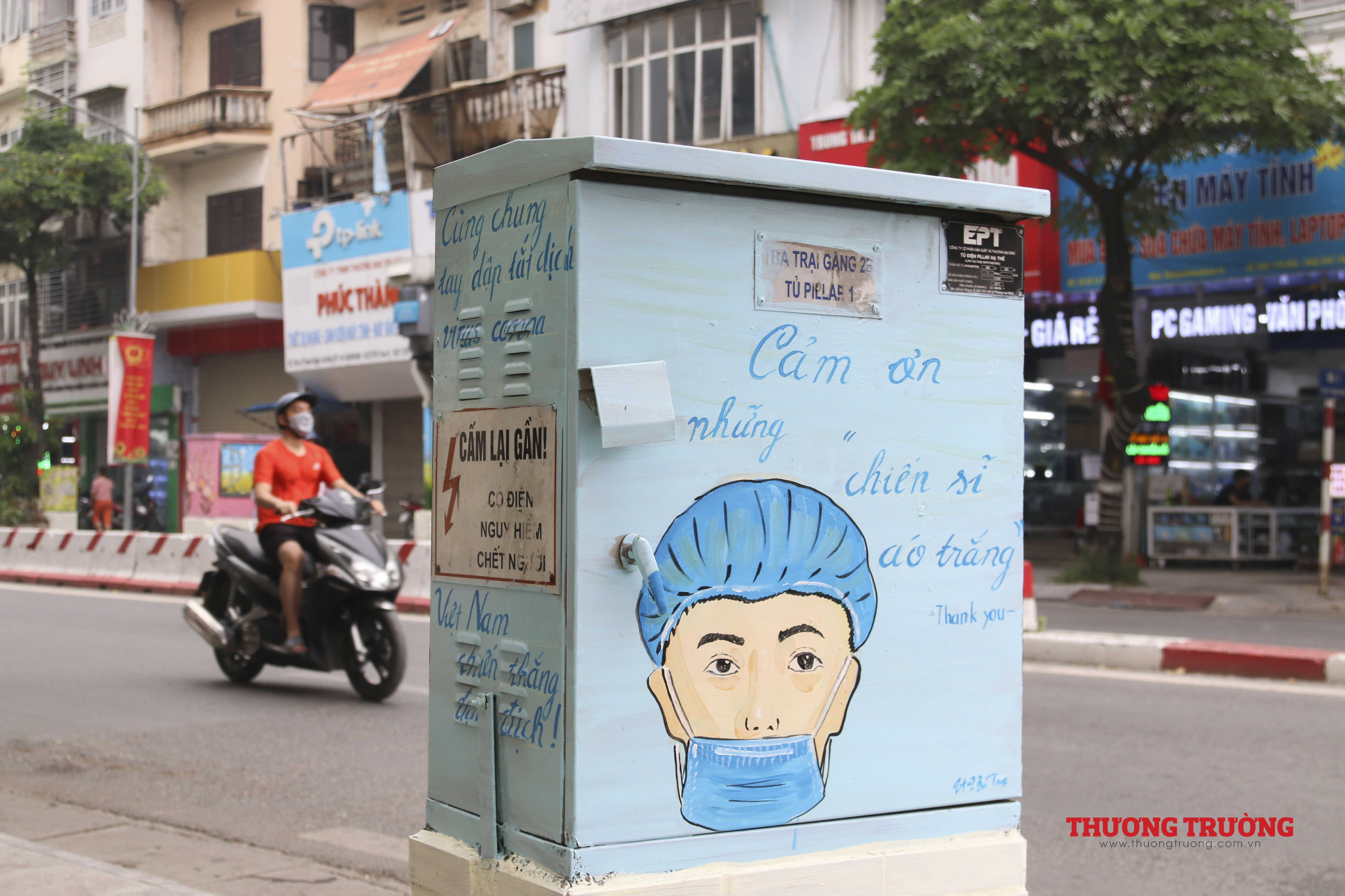 Mới đây, tại ngã tư Bạch Mai - Lê Thanh Nghị (Hai Bà Trưng - Hà Nội) xuất hiện nhiều bức bích họa trên các bốt điện nhằm cổ vũ đội ngũ thầy thuốc nơi tuyến đầu chống dịch cũng như mong muốn người dân thực hiện nghiêm quy định phòng, chống dịch COVID-19.