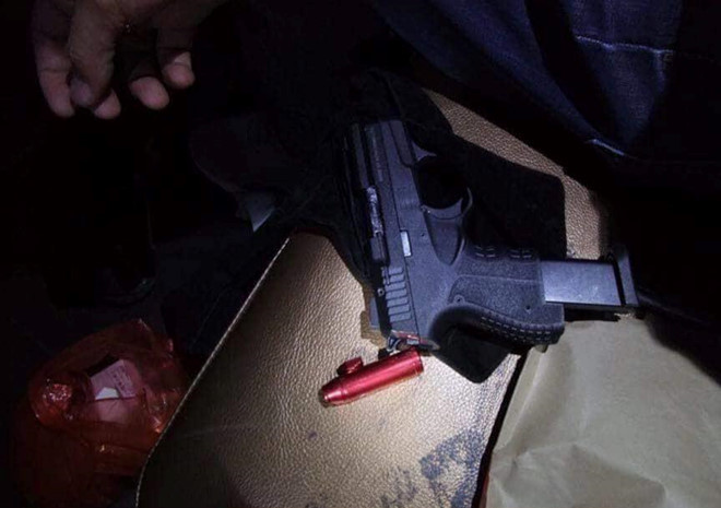 Lực lượng chức năng thu giữ 1 khẩu súng cùng 5 viên đạn tại quán Hey Club (Ảnh: Công an TP Hà Nội). |