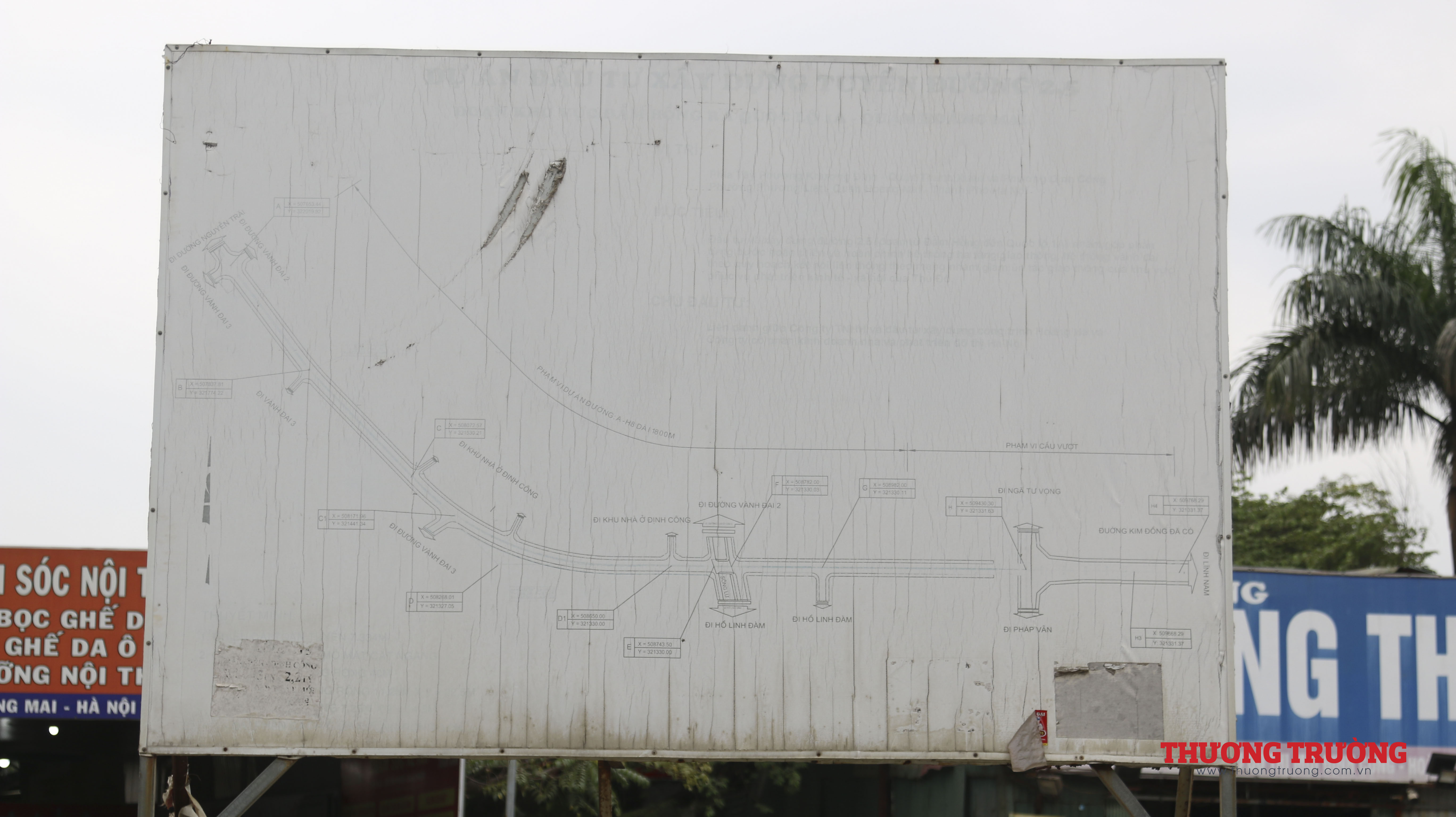Bản vẽ quy hoạch dự án đã bị mờ. Dự án có mức đầu tư gần 1.300 tỉ đồng, dự kiến hoàn thành đưa vào sử dụng tháng 12.2016. Tuy nhiên, sau gần 20 năm triển khai, dự án vẫn đang vướng mắc ở khâu giải phóng mặt bằng hơn 1km từ Đầm Hồng đến sông Tô Lịch.