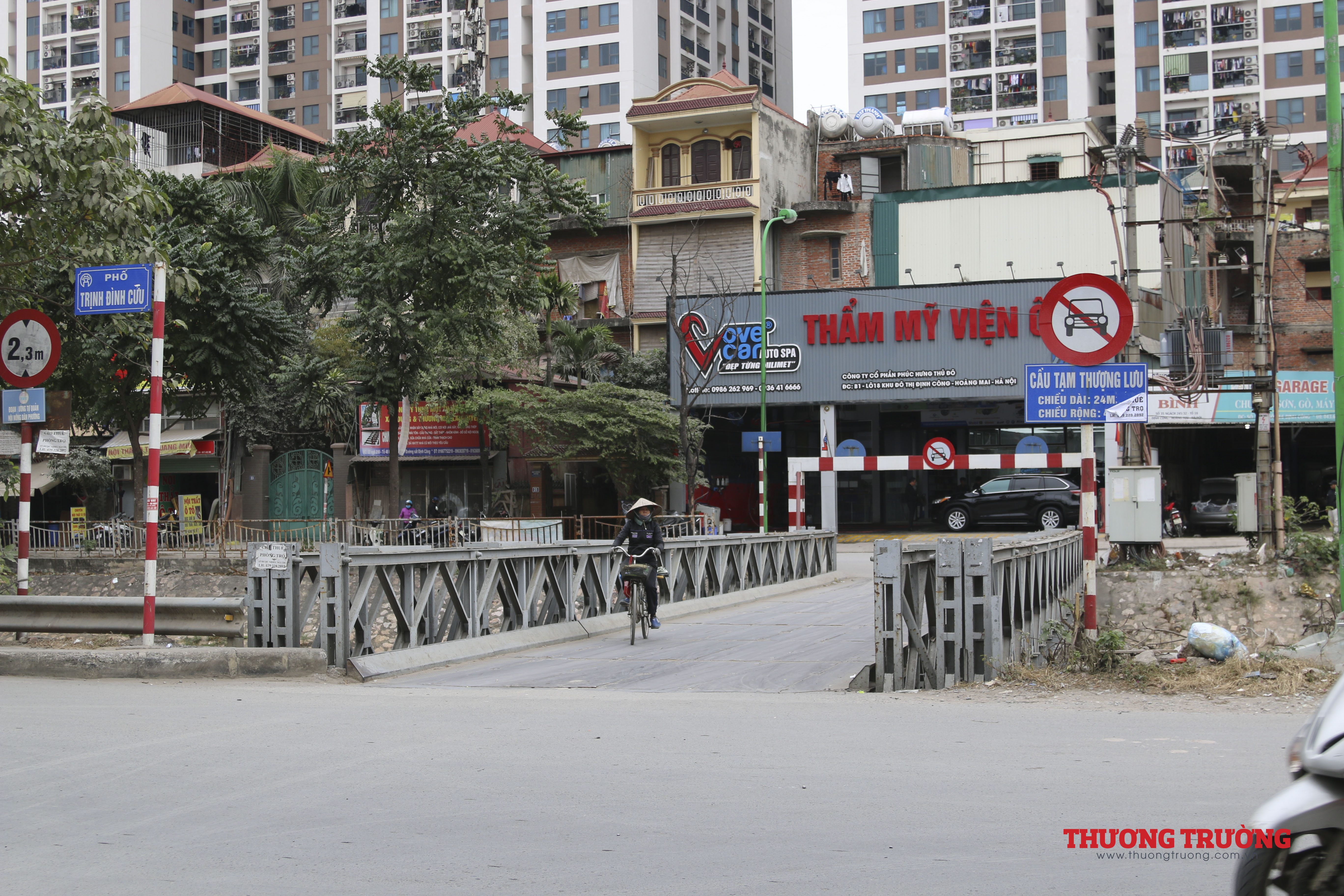 Do cầu chính không thể thông xe nên hàng ngày phương tiện và người dân đi qua khu vực này vẫn phải sử dụng cầu tạm nhỏ hẹp và đầy nguy hiểm.