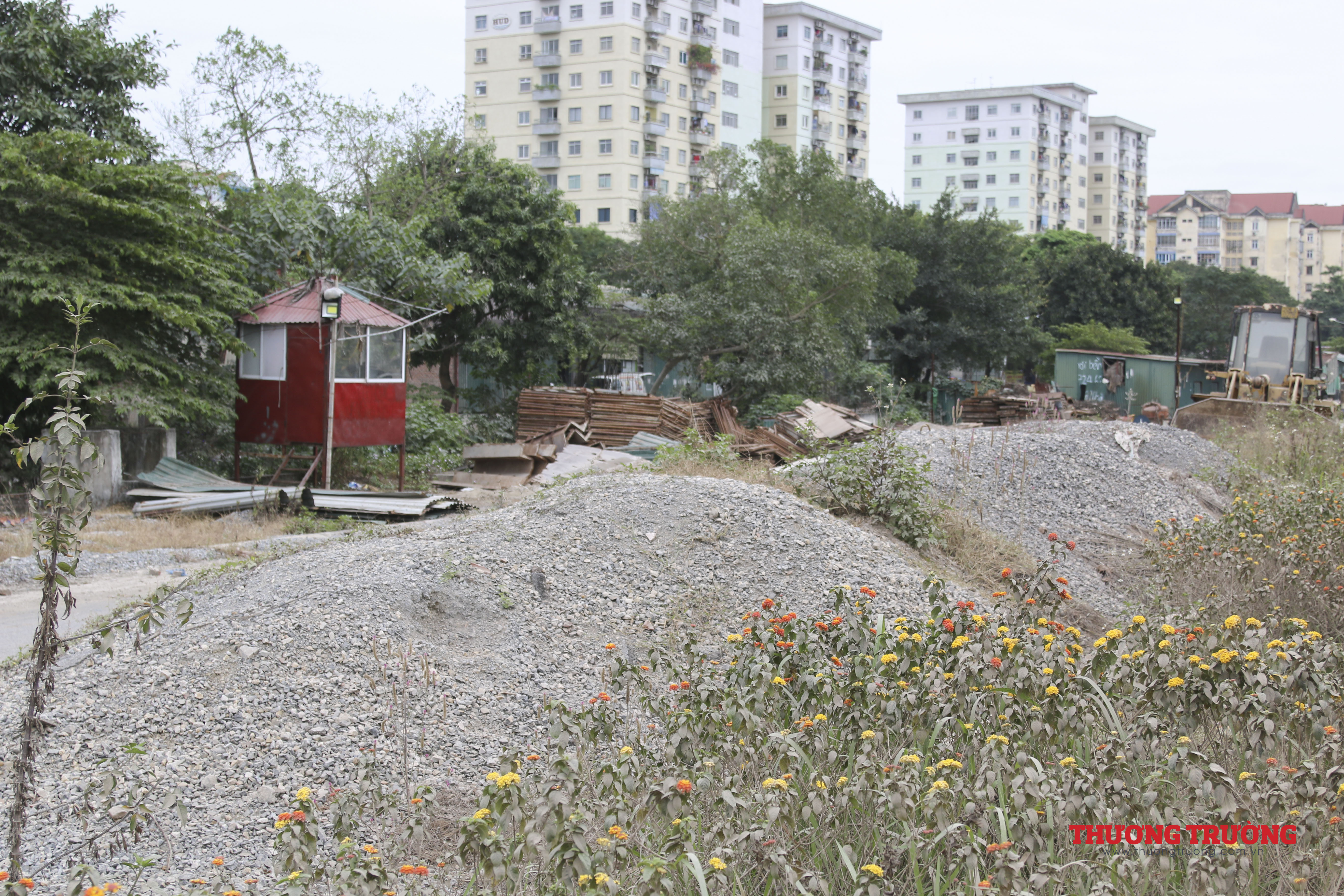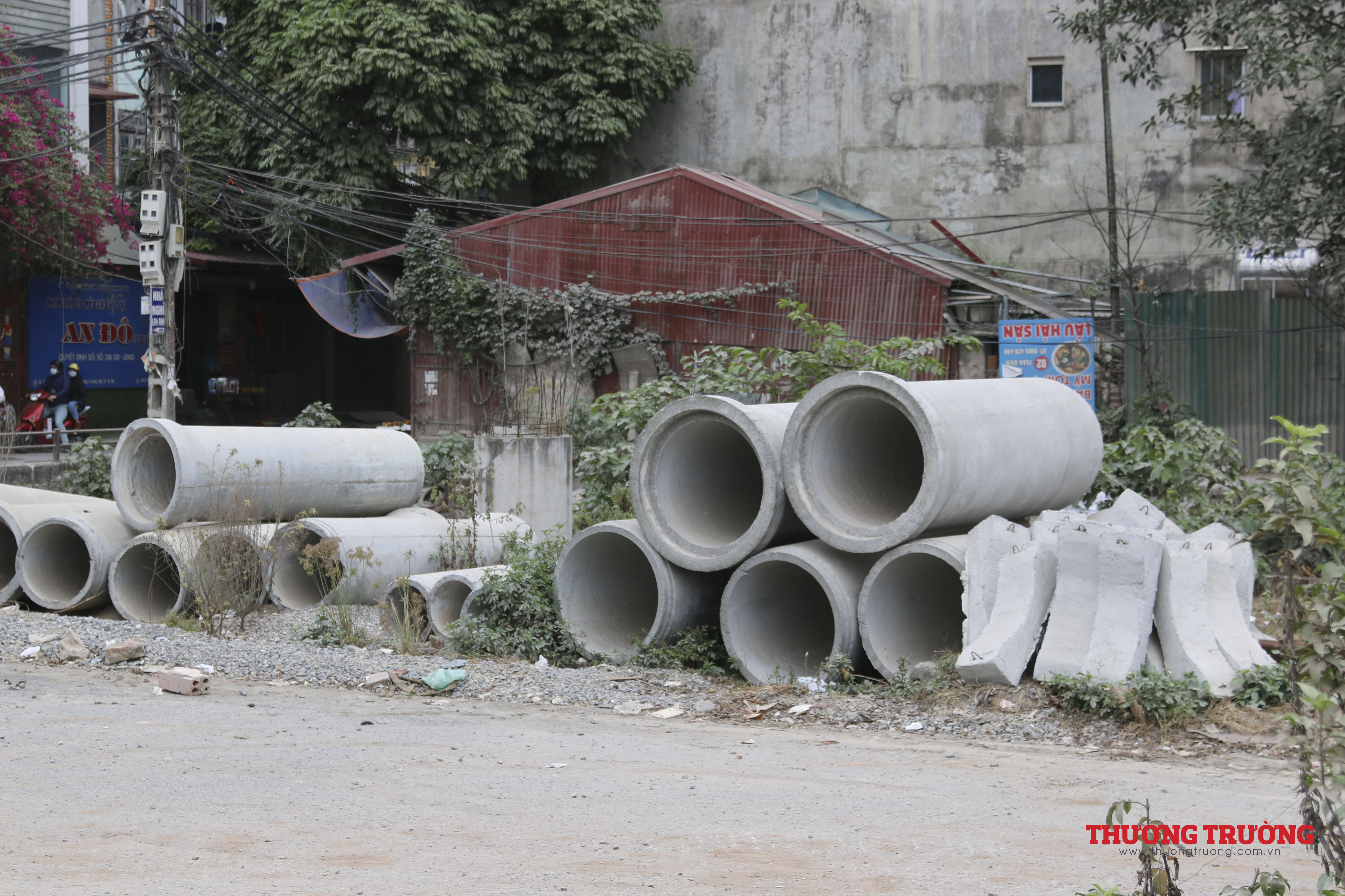 Vật liệu xây dựng nằm ngổn ngang.