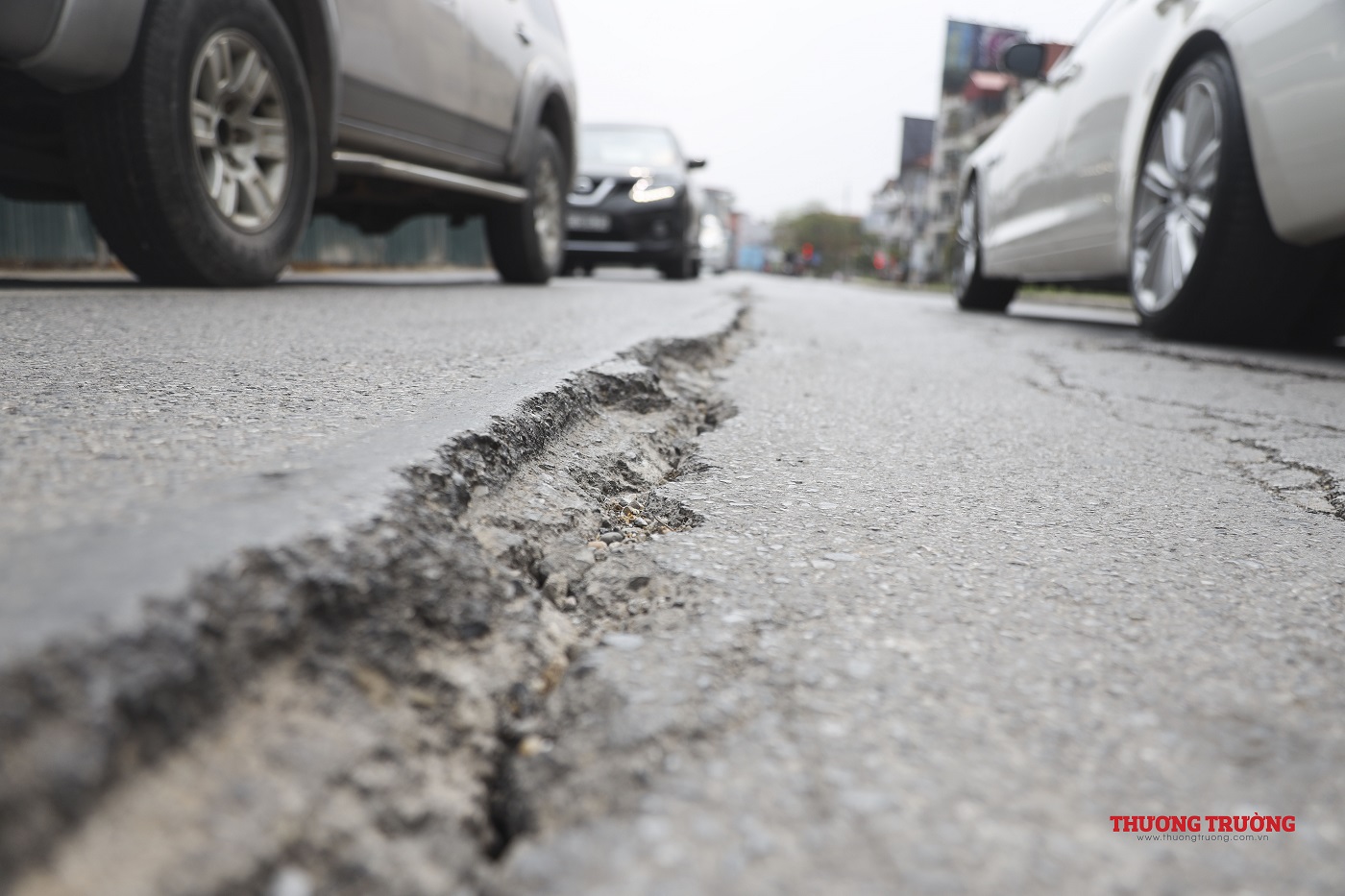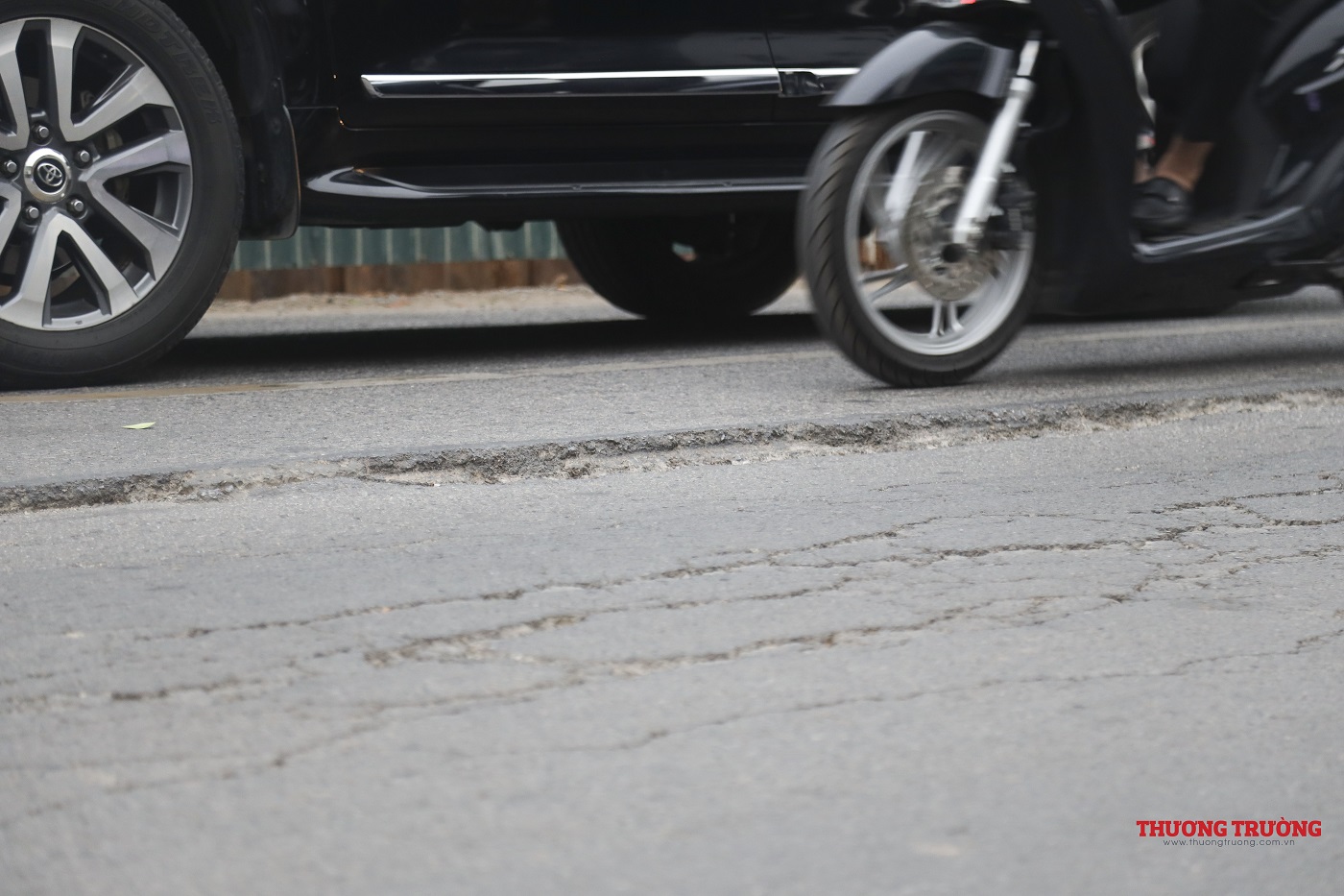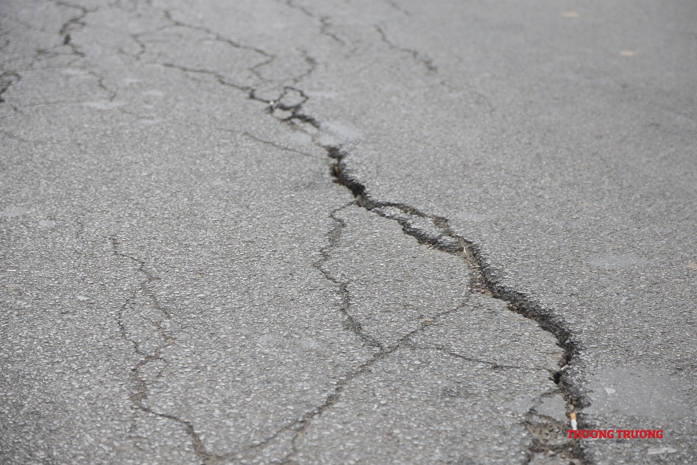 Nhiều đoạn mặt đường trồi, sụt với những vết nứt cao gần chục cm, tiềm ẩn nhiều nguy cơ gây rủi ro cho người đi đường.