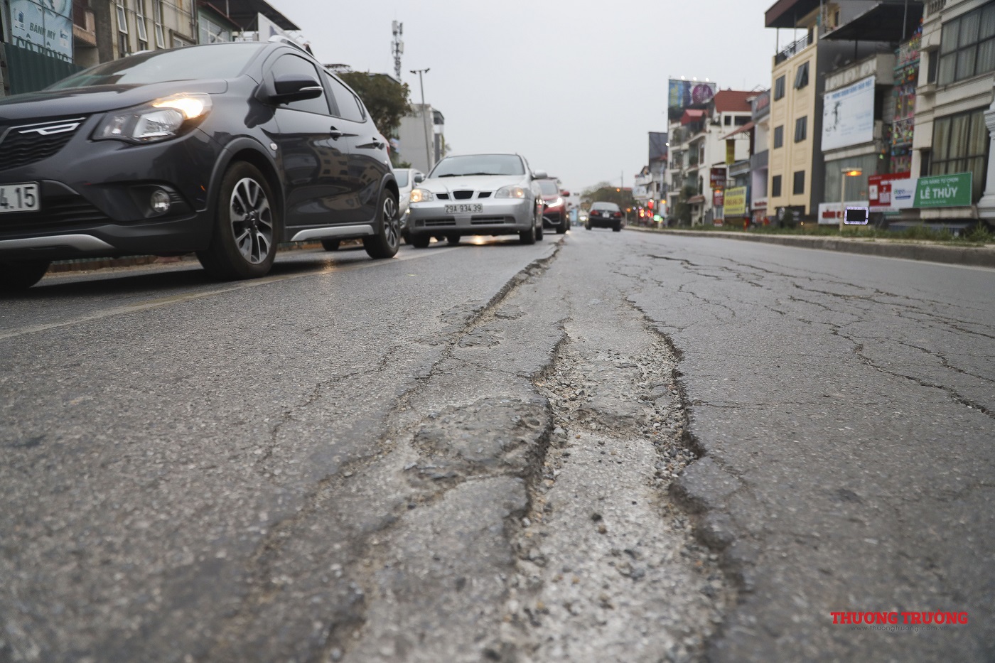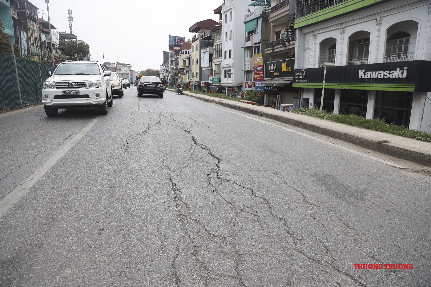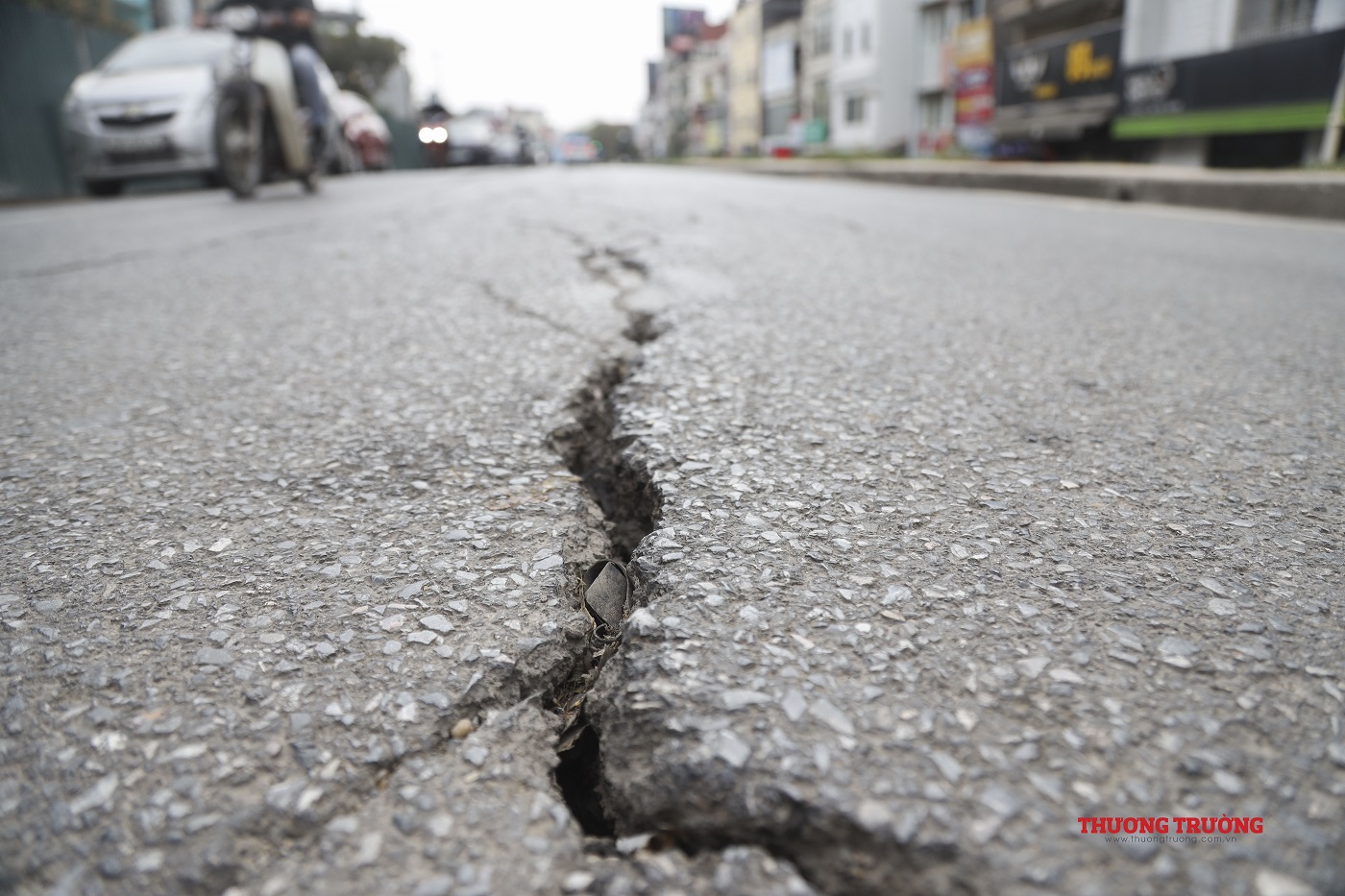 Nhiều đoạn mặt đường trồi, sụt với những vết nứt cao gần chục cm, tiềm ẩn nhiều nguy cơ gây rủi ro cho người đi đường.
