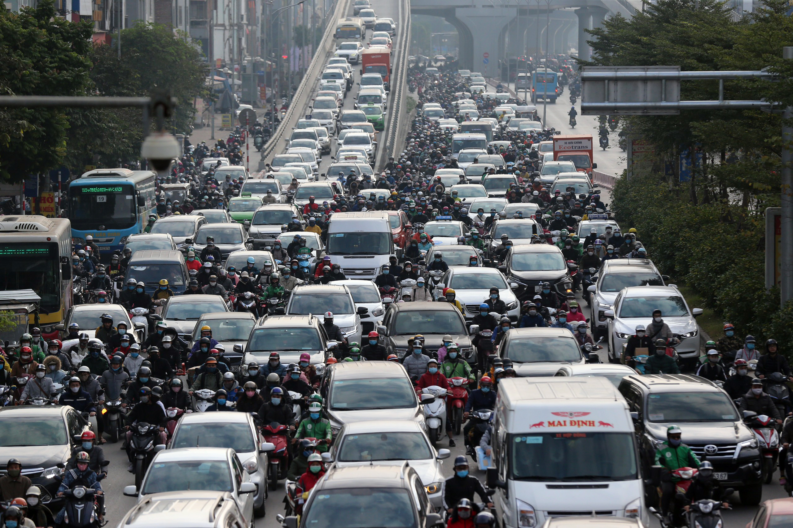 Đường phố Hà Nội tắc "nghẹt" và giờ cao điểm.