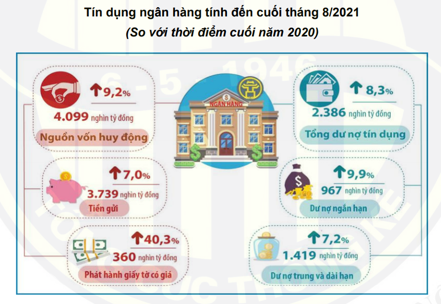 Tình hình tín dụng trên địa bàn TP Hà Nội tính đến cuối tháng 8/2021. Nguồn Cục Thống kê Hà Nội
