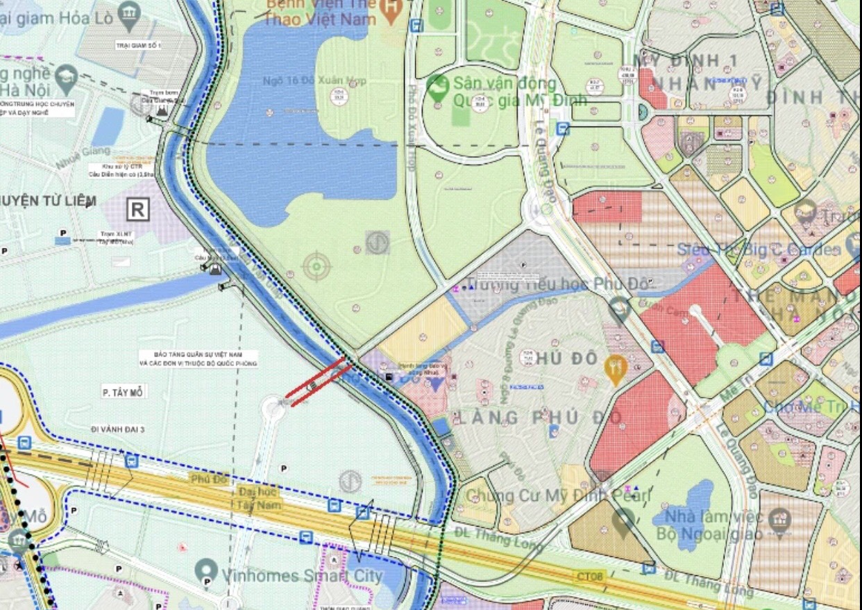 UBND TP Hà Nội vừa phê duyệt chỉ giới đường đỏ tuyến đường từ Trung tâm Thể dục - Thể thao quân đội (Bộ Quốc phòng) đến Bảo tàng Lịch sử Quân sự Việt Nam (bao gồm cả cầu qua sông Nhuệ) tỷ lệ 1/500 thuộc địa bàn quận Nam Từ Liêm.