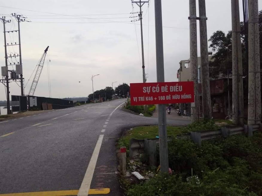 Cụ thể, sự cố đê điều xảy ra tại vị trí k46+160 đê Hữu Hồng, đoạn đê xuất hiện nhiều vết nứt dài, dọc hành lang thượng lưu bị gãy khoảng 30m, các vết nứt có nơi rộng khoảng 3-5cm.
