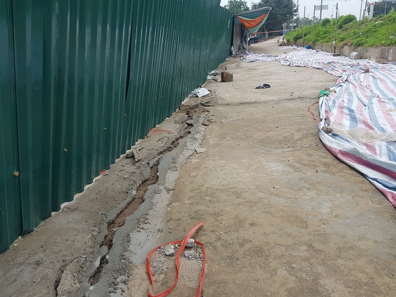 Hiện tại điểm gãy nứt đã được đặt biển báo sự cố, tổ chức phân luồng giao thông không cho xe cơ giới đi vào khu vực này và đề nghị Công ty CP nước mặt sông Hồng dừng thi công trạm bơm nước thô.