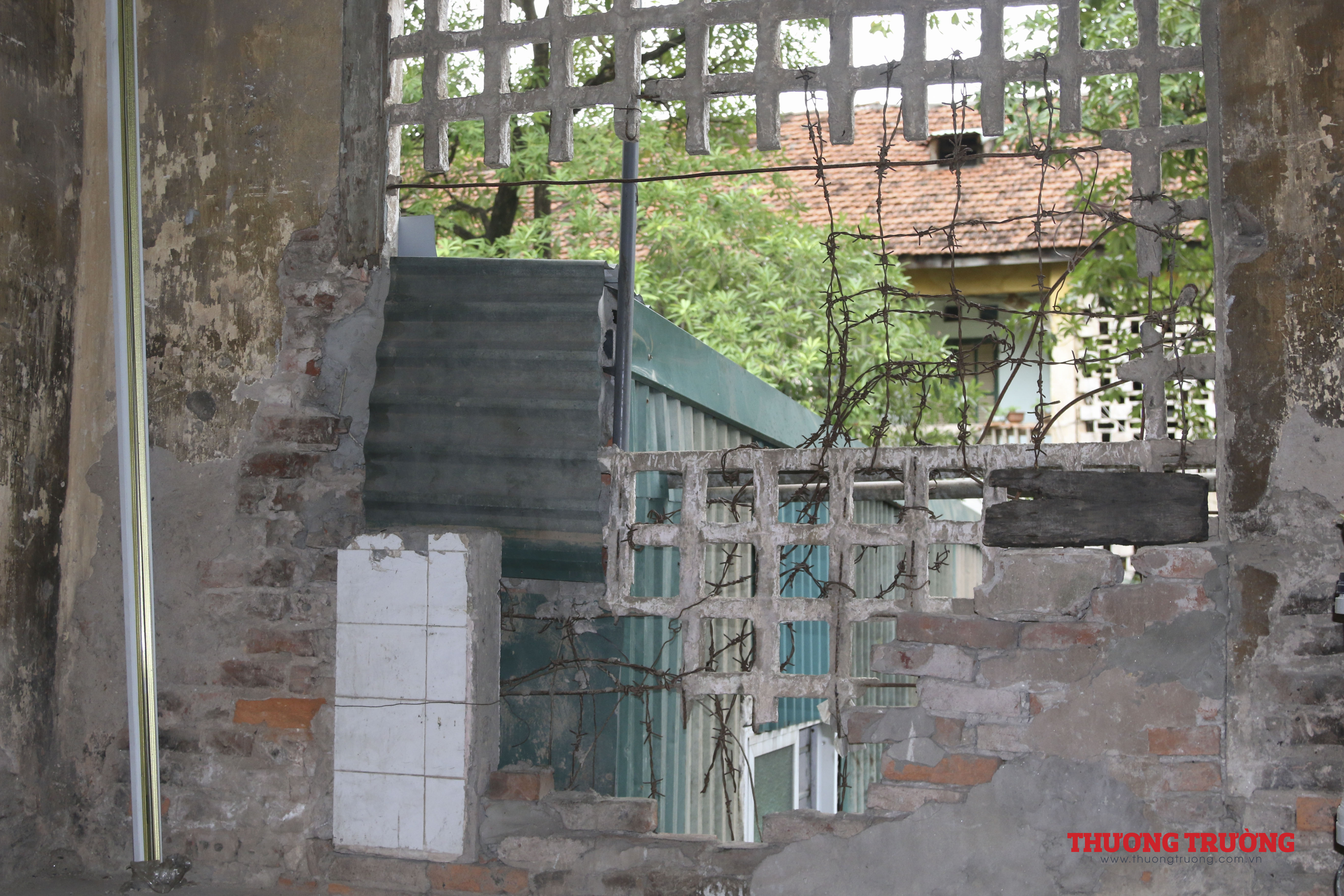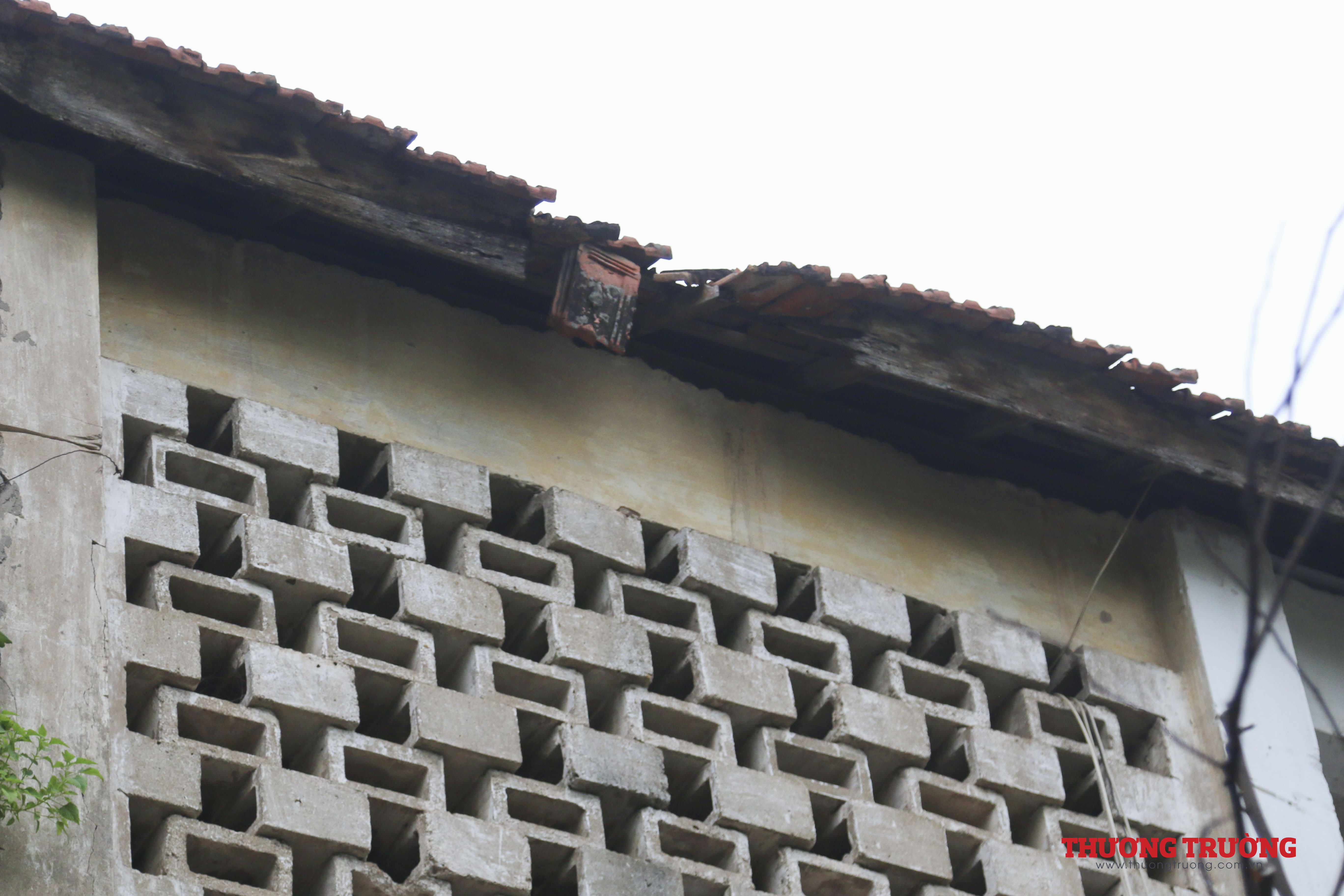 Trần nhà bằng tre trát vữa đã bong tróc, tiềm ẩn nguy cơ mất an toàn, ánh sáng mặt trời có thể xuyên thấu qua một lớp ngói và một lớp cót ép vôi rơm thủng lỗ chỗ.