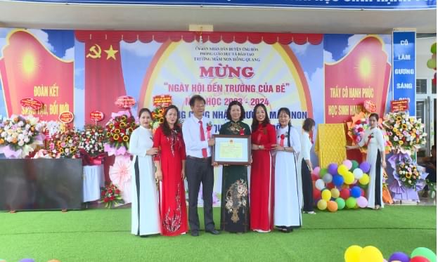 Tại trường Mầm non Hồng Quang, đồng chí Nguyễn Chí Viễn - Phó Bí thư Thường trực Huyện uỷ đã tới dự ngày hội đến trường của bé tại và trao Bằng công nhận trường đạt chuẩn Quốc gia mức độ 1. Cùng dự có đồng chí Đỗ Năng Bình - UVBTV, Trưởng ban Tuyên giáo Huyện uỷ; lãnh đạo các phòng Giáo dục và đào tạo, Trung tâm Văn hoá - Thông tin và Thể thao huyện.