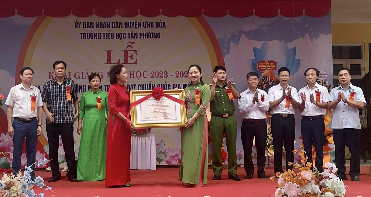 Tại trường Tiểu học Tân Phương (Thị trấn Vân Đình): Đồng chí Bùi Thị Thu Hiền - TUV, Bí thư Huyện ủy đã dự Lễ khai giảng, trao Bằng công nhận Trường đạt chuẩn Quốc gia mức độ 1 và chung vui với cán bộ, giáo viên, học sinh toàn trường, cùng dự còn có các đồng chí Lãnh đạo các cơ quan, phòng ban thuộc huyện.