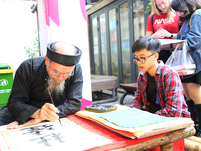 | Ông Đồ cho chữ tại phố sách |