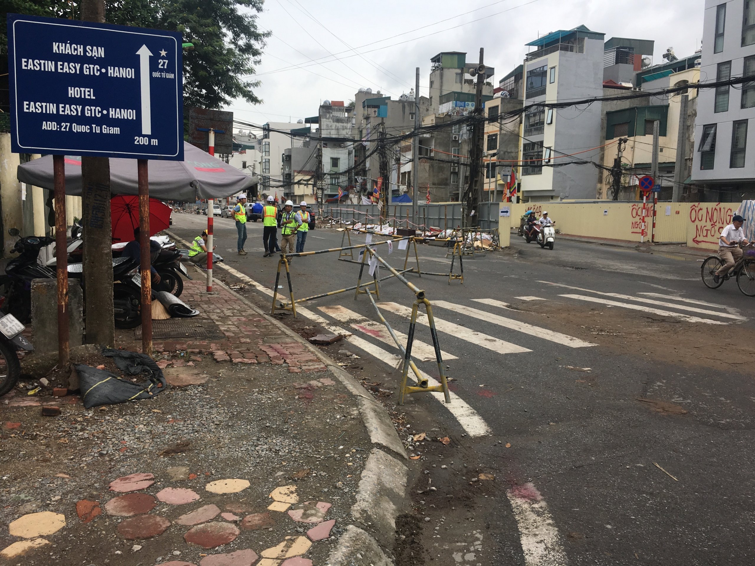 Đường Quốc Tử Giám chia làm đôi sau rào chắn, đoạn đường còn lại này chỉ rộng chừng 7m để có phương tiện lưu thông 2 chiều. Theo tìm hiểu, đoạn đường thi công ga ngầm này có chiều dài chừng 195m và rộng khoảng gần 19m.