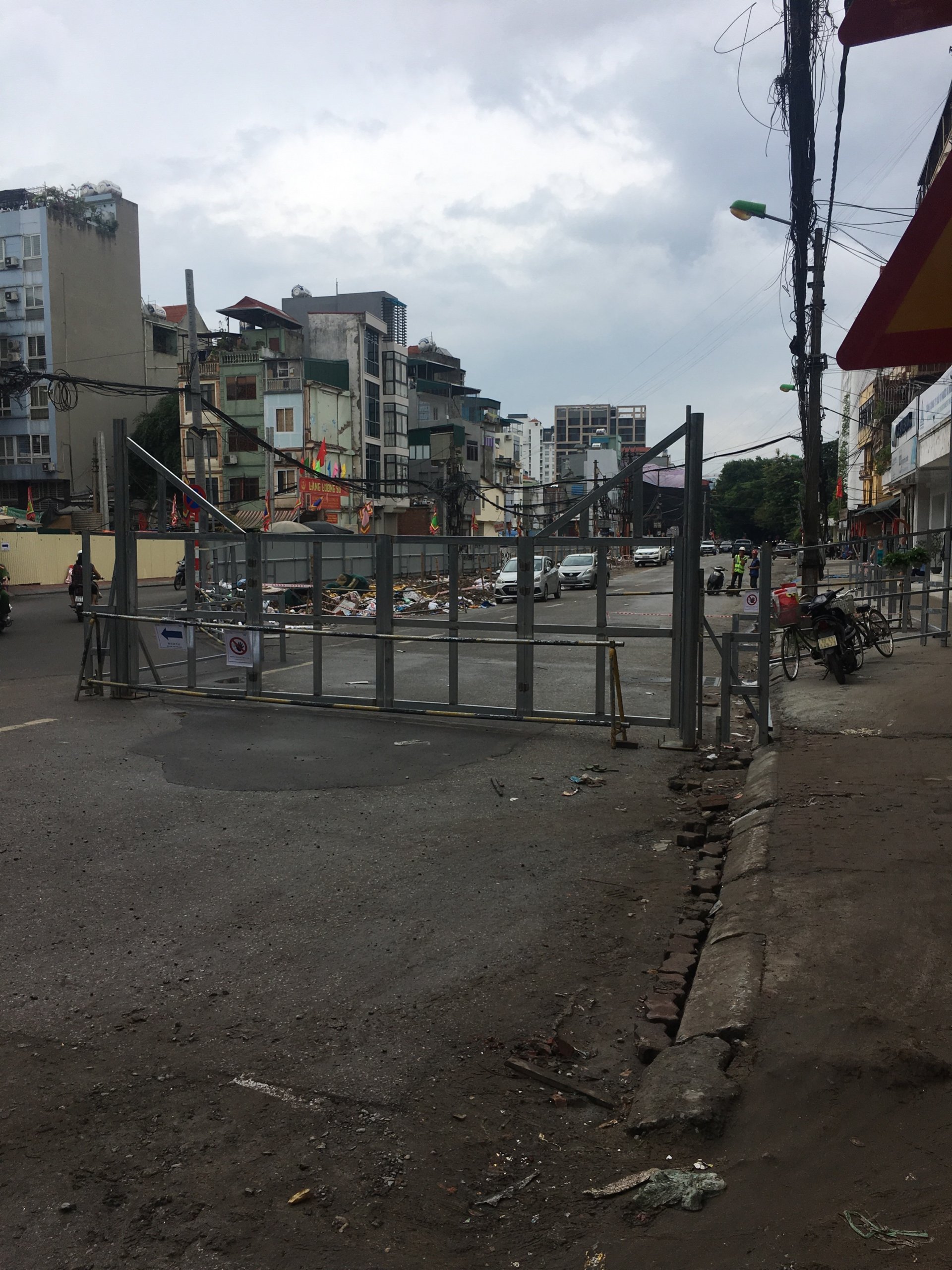 Trong khi đó, trên đường Kim Mã, một số rào chắn thử cũng được dựng lên.