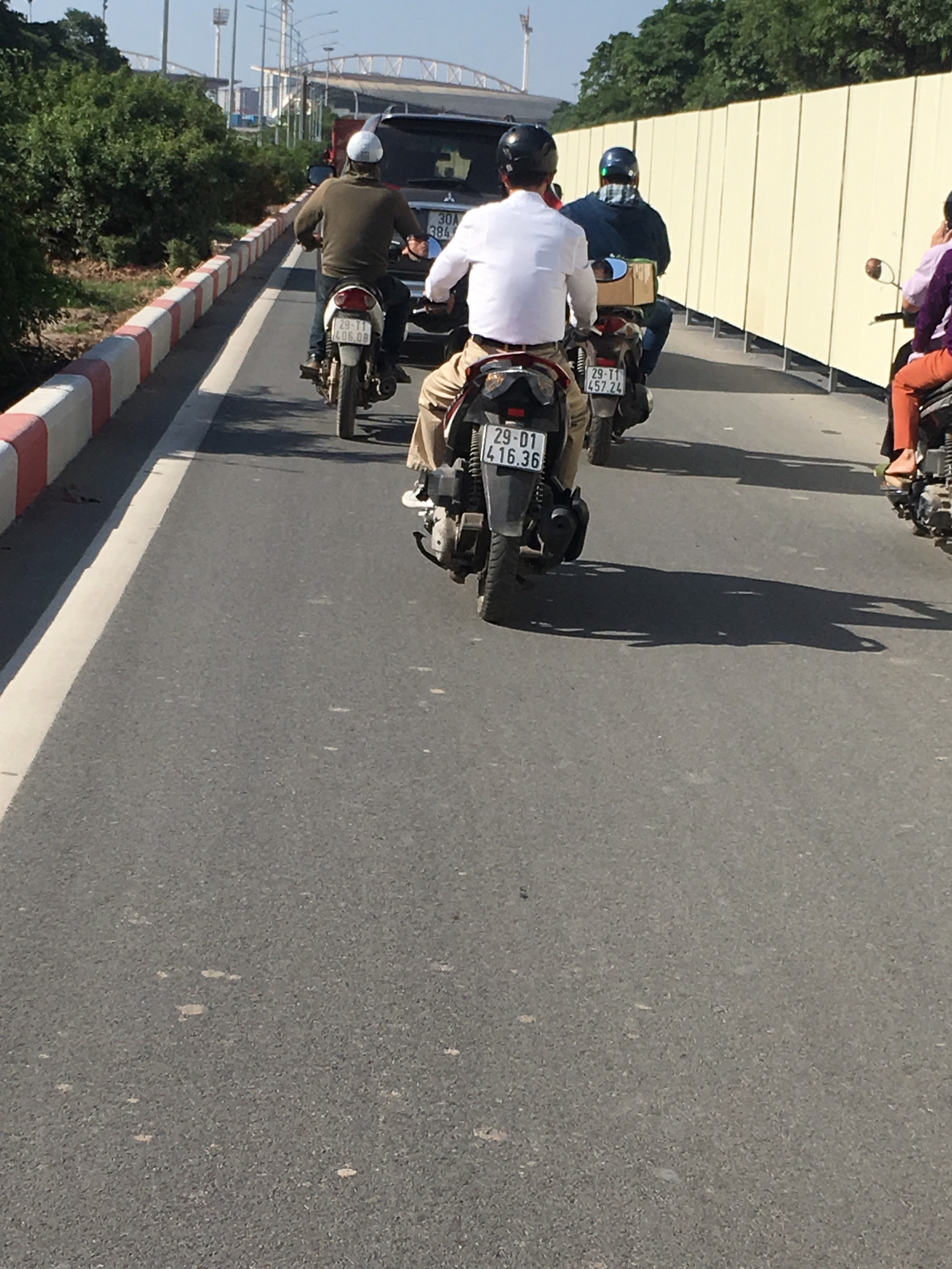 Vì một số rào chắn hoàn thiện nên đơn vị thi công đang cố gắng gắn tôn hoàn thiện rào chắn để đảm bảo an toàn cho người tham gia giao thông