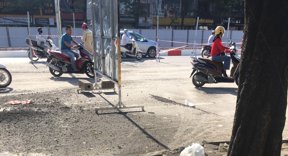 Sau một thời gian thi công, đơn vị thi công đã cho lắp thêm rào chắn để tiếp tục hoàn thành thêm các đoạn đường. Điều này đã vô tình khiến người dân lúng túng, chưa bắt nhịp được lộ trình tham gia giao thông.