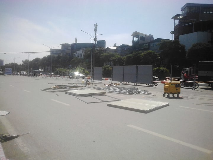Tuy nhiên, cũng có những đoạn rào chắn chưa hoàn chỉnh. Các khung rào đã được thiết lập nhưng chưa gắn tôn.
