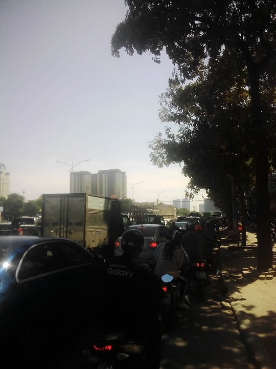 Theo ghi nhận của PV, sau khi lập rào chắn thêm, phần đoạn đường được lưu thông hẹp lại chỉ còn 4-5m nên rất dễ xảy ra ách tắc. Với chiều rộng hẹp như vậy, chỉ cần có nhiều xe ô tô, xe bán tải, xe tải,...lưu thông đông đã gây ách tắc chứ chưa nói gì đến giờ cao điểm.