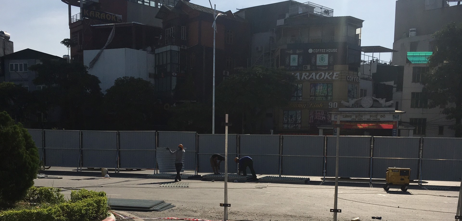 Có đoạn, rào chắn tôn đã được hoàn thiện.