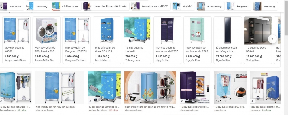 Khảo sát trên một số sàn thương mại điện tử, thị trường tủ sấy quần áo rất đa dạng, tương đối rẻ với mức giá dao động từ khoảng 600.000 đồng – 2 triệu đồng/chiếc. Cụ thể như máy sấy nhãn hiệu Sunhouse có giá khoảng 1,2 triệu đồng/chiếc; hiệu Kangaroo có giá khoảng 1,3 triệu đồng/chiếc…