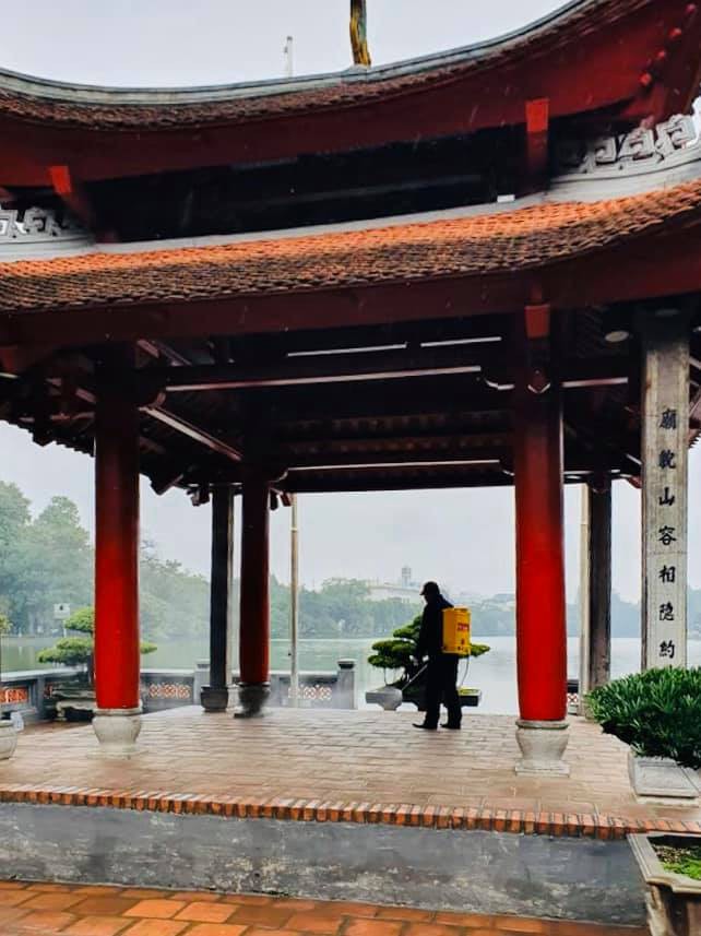 Các di tích khác tại Hà Nội như Đền Ngọc Sơn, đền Bà Kiệu ngay trung tâm Hồ Gươm cũng được phun khử trùng trong ngày 5/2.