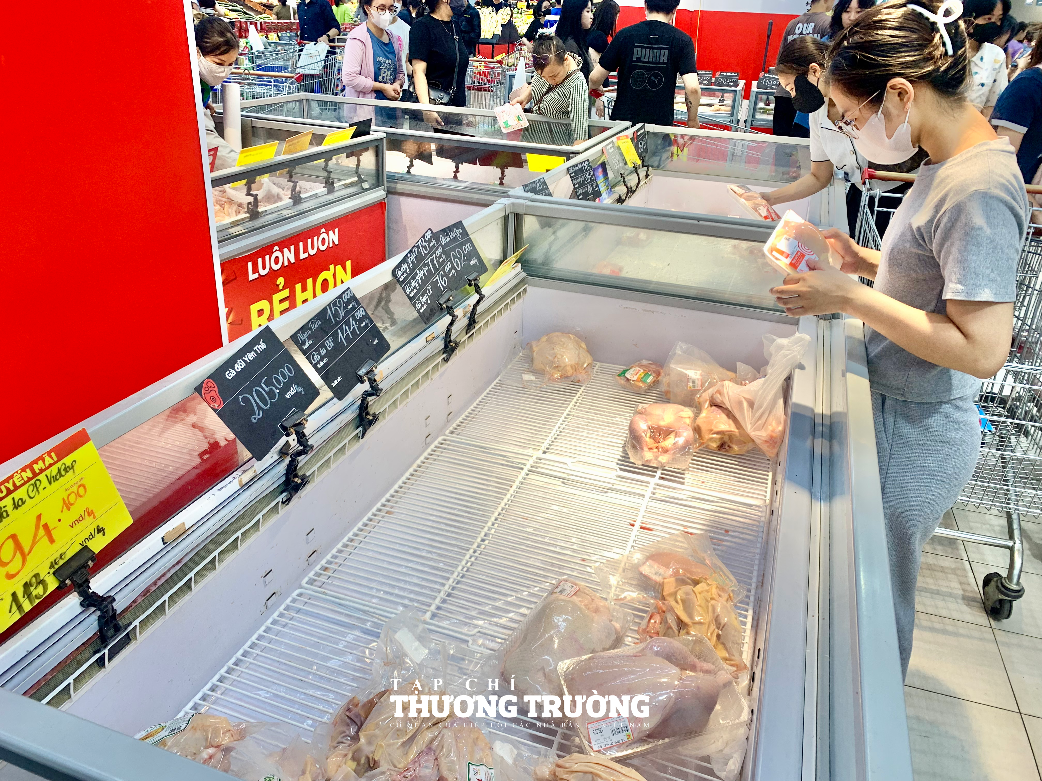 Người tiêu dùng chọn mua những sản phẩm cuối cùng tại quầy thịt gà.
