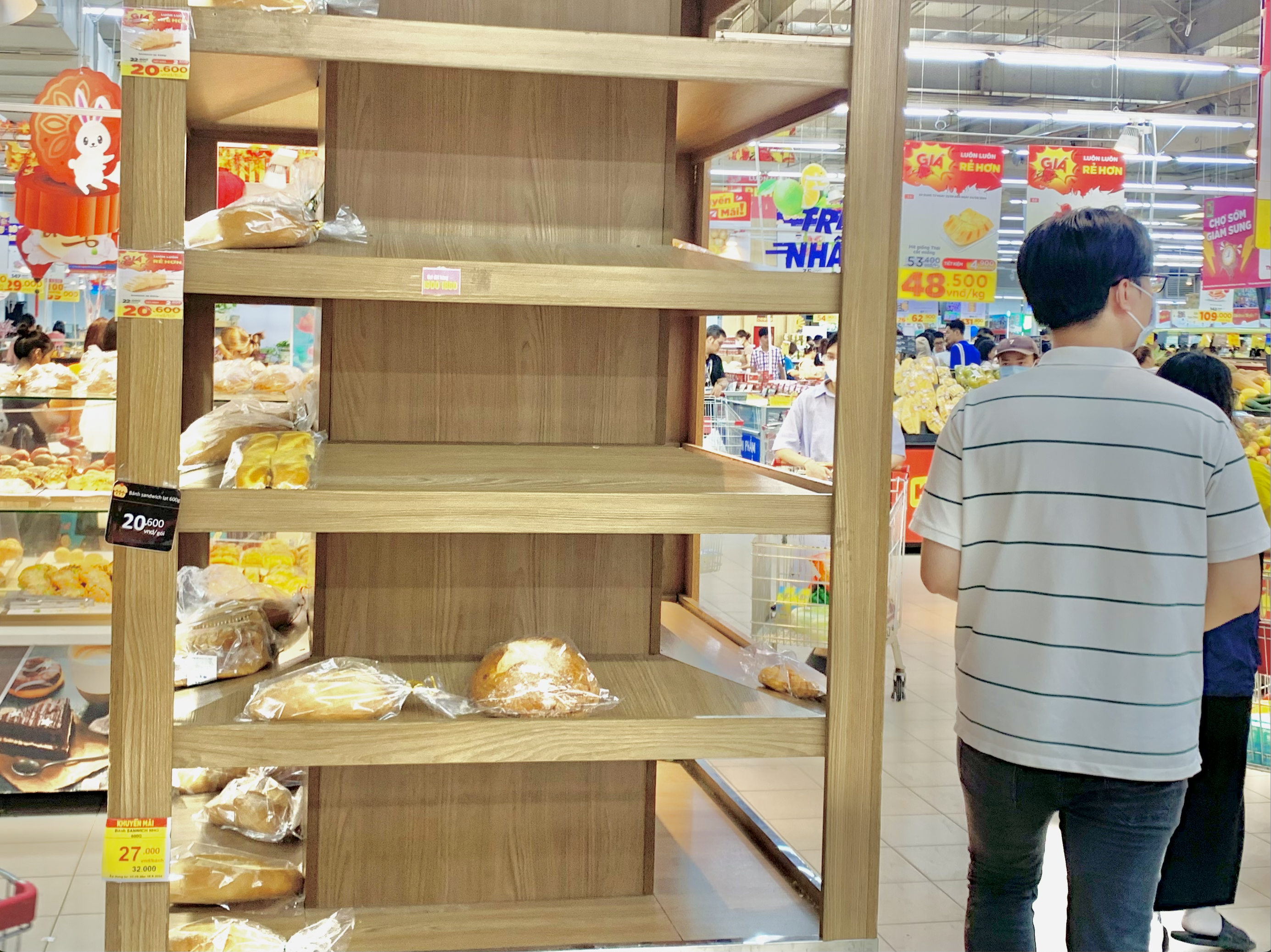 Các gian hàng thực phẩm khô, chế biến sẵn như bánh mì, sữa tươi... cũng có dấu hiệu cạn kiệt.