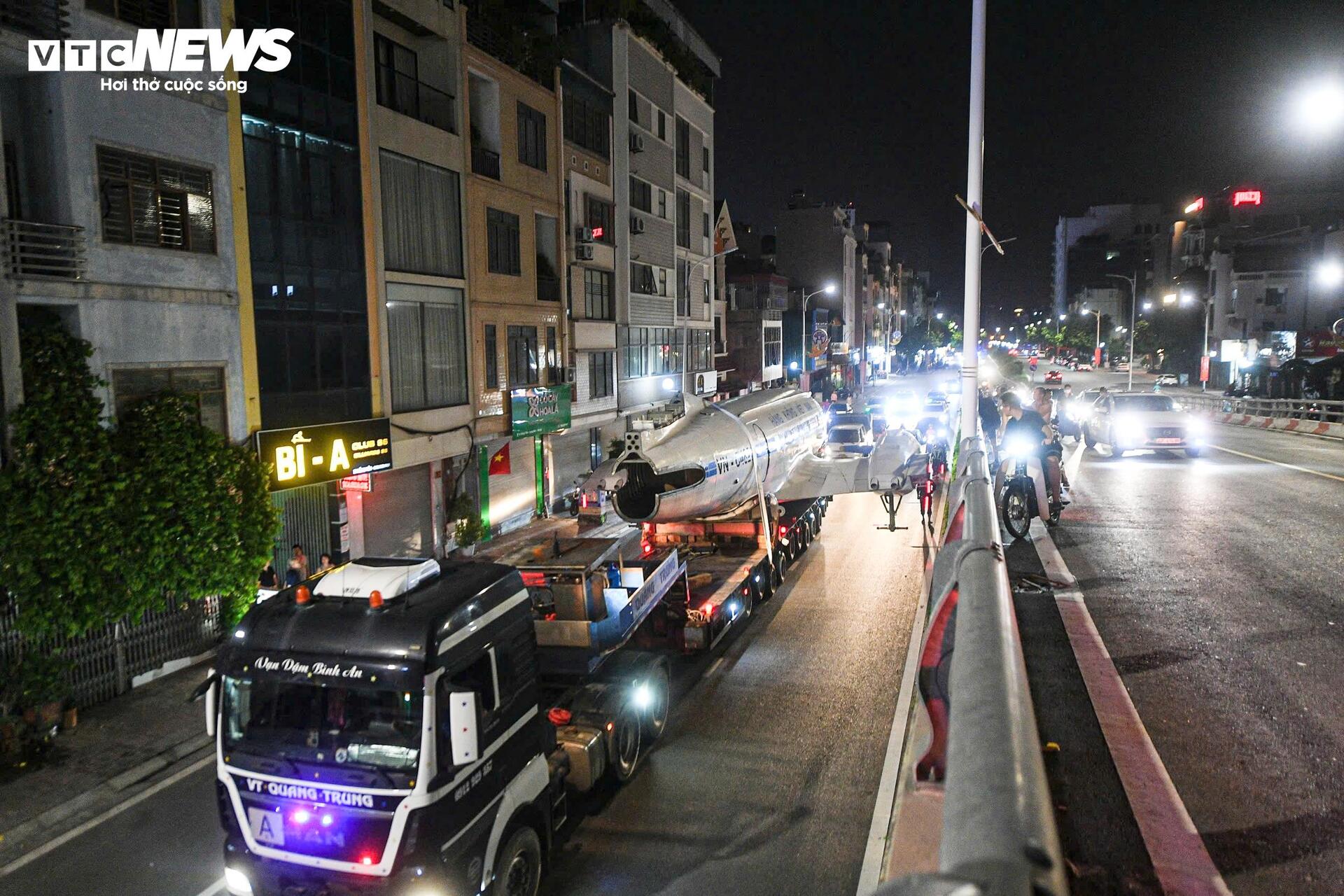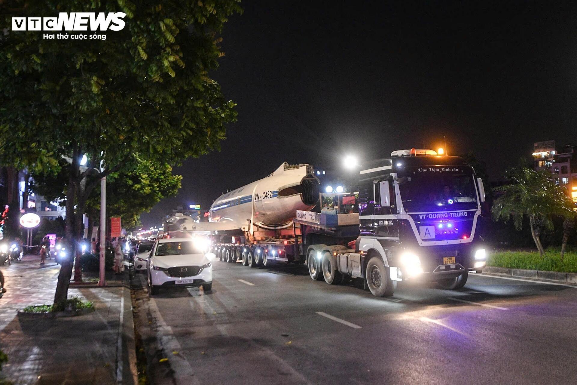 Việc di chuyển chiếc máy bay khối lượng hàng chục tấn qua phố không hề đơn giản. Lực lượng chức năng phải sử dụng xe moóc siêu trường, siêu trọng, di chuyển chậm rãi dưới sự dẫn đường, bảo vệ nghiêm ngặt và đảm bảo an toàn tuyệt đối.
