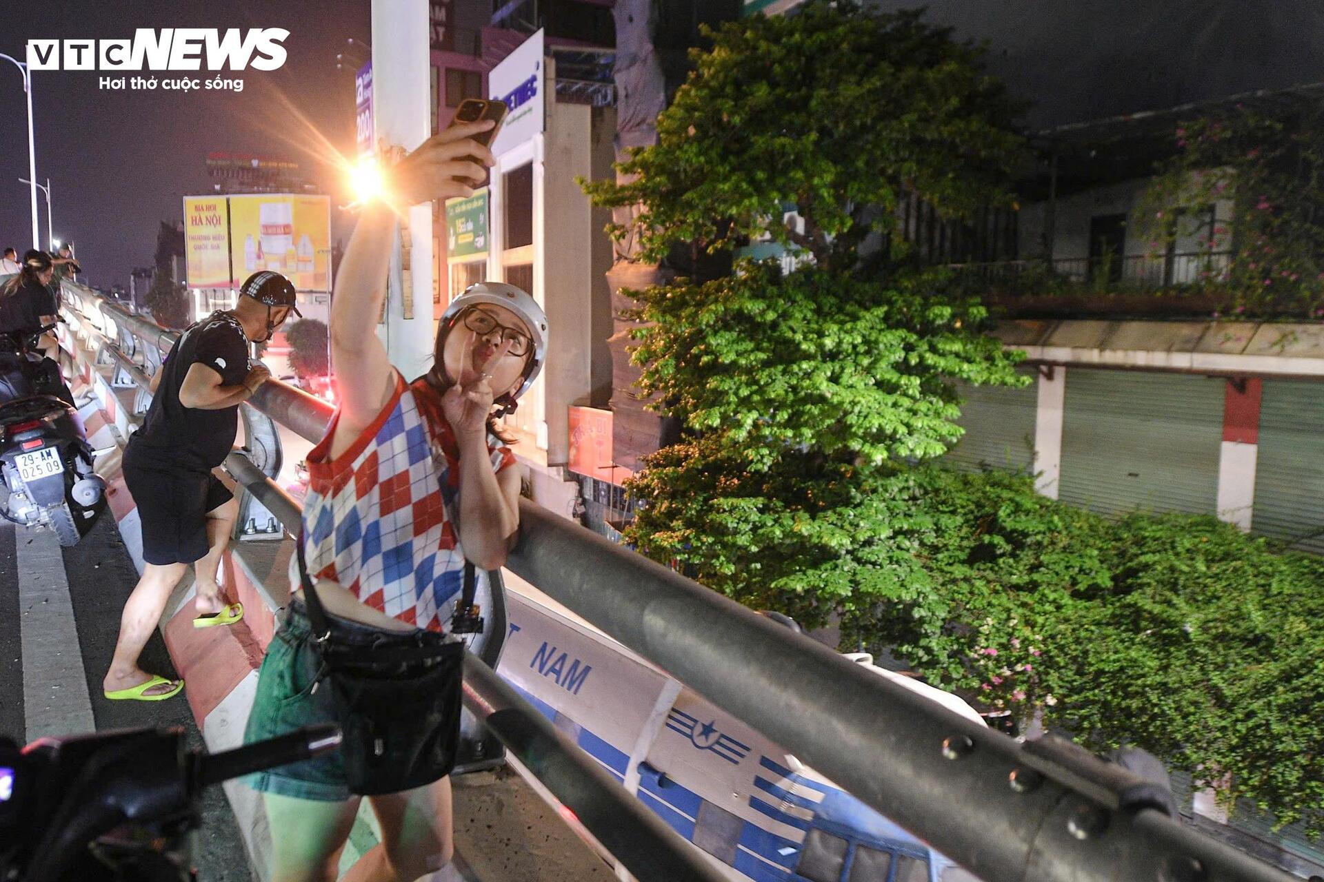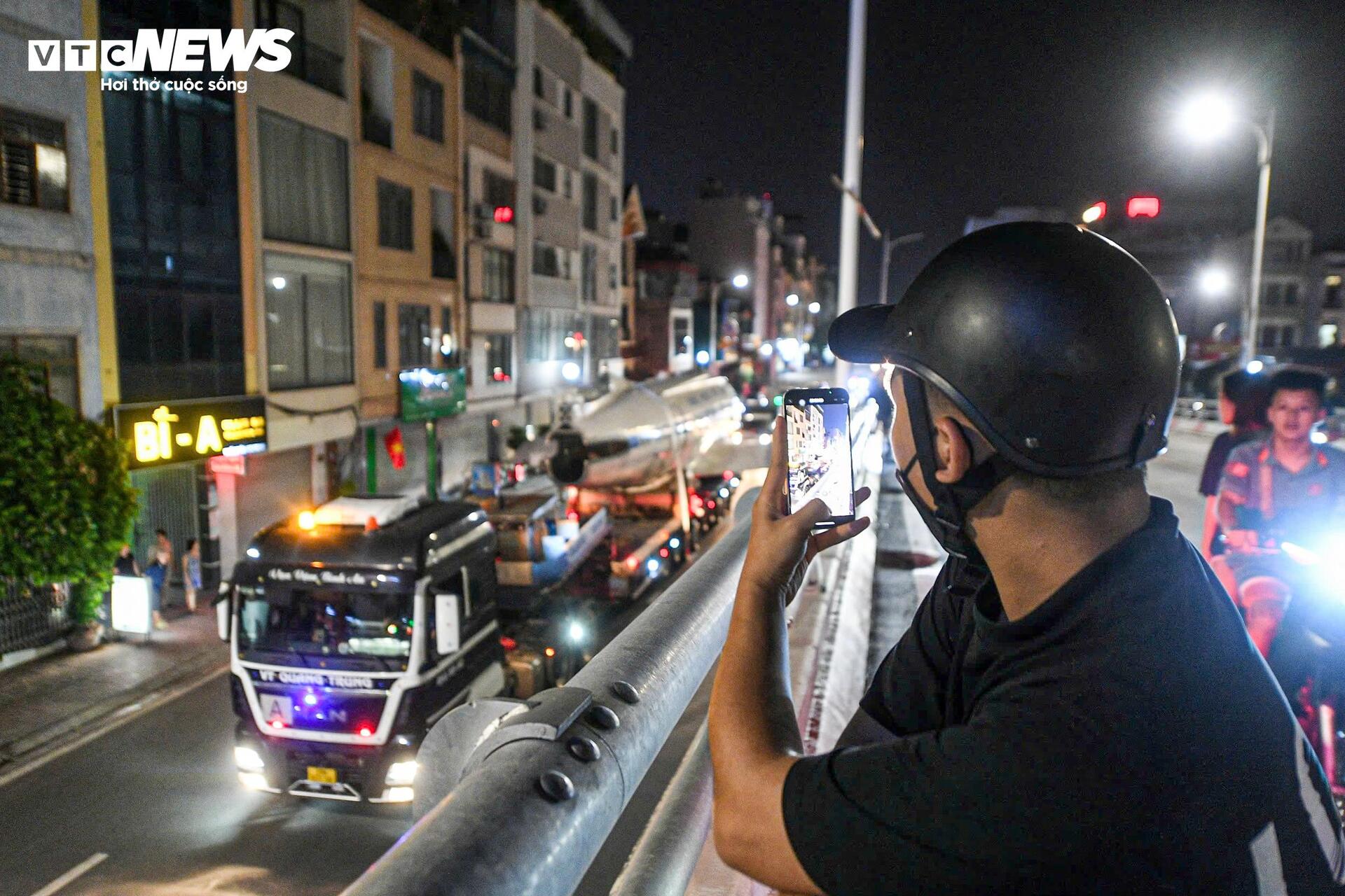 Đoàn xe di chuyển trong sự dõi theo của người dân, ánh đèn điện thoại, máy ảnh liên tục sáng lên ghi lại từng khoảnh khắc.