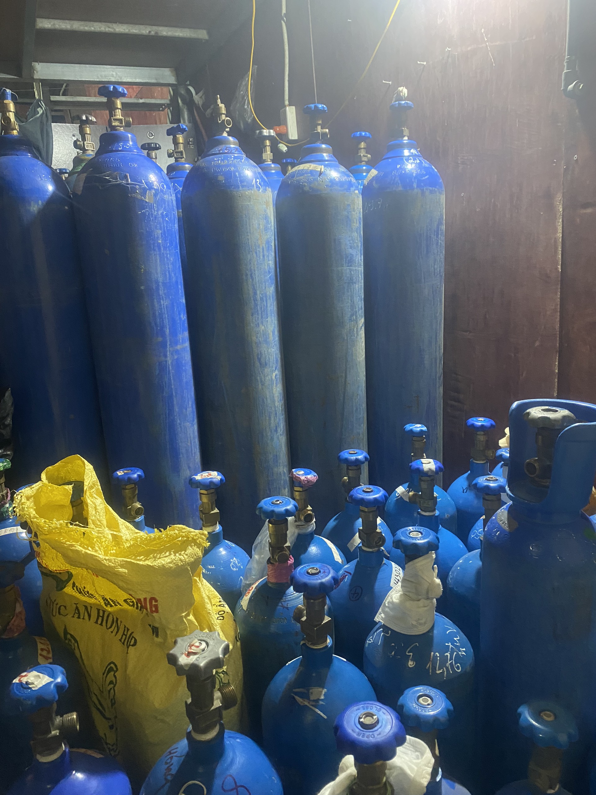 Tại thời điểm kiểm tra, Đoàn kiểm tra đã phát hiện tại cơ sở đang kinh doanh 135 bình chứa khí N2O bên trong có chứa 437 kg khí N2O không có nhãn mác thể hiện nguồn gốc nơi sản xuất và xuất xứ hàng hóa, là hàng hóa không rõ nguồn gốc, xuất xứ.