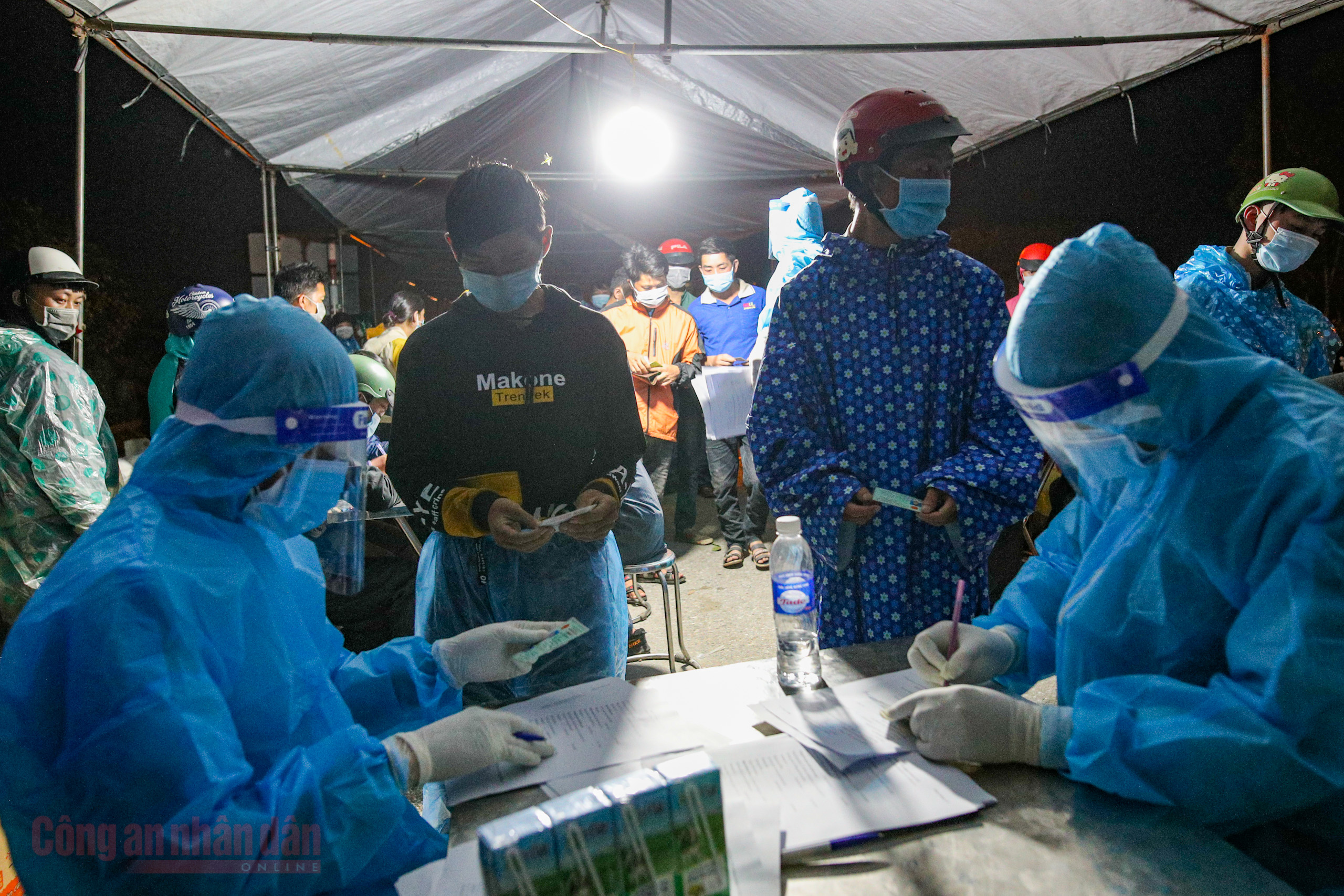 Công an Hà Nội xuyên đêm giúp đỡ người dân trở về từ vùng dịch các tỉnh phía Nam. Ảnh: CA Hà Nội.
