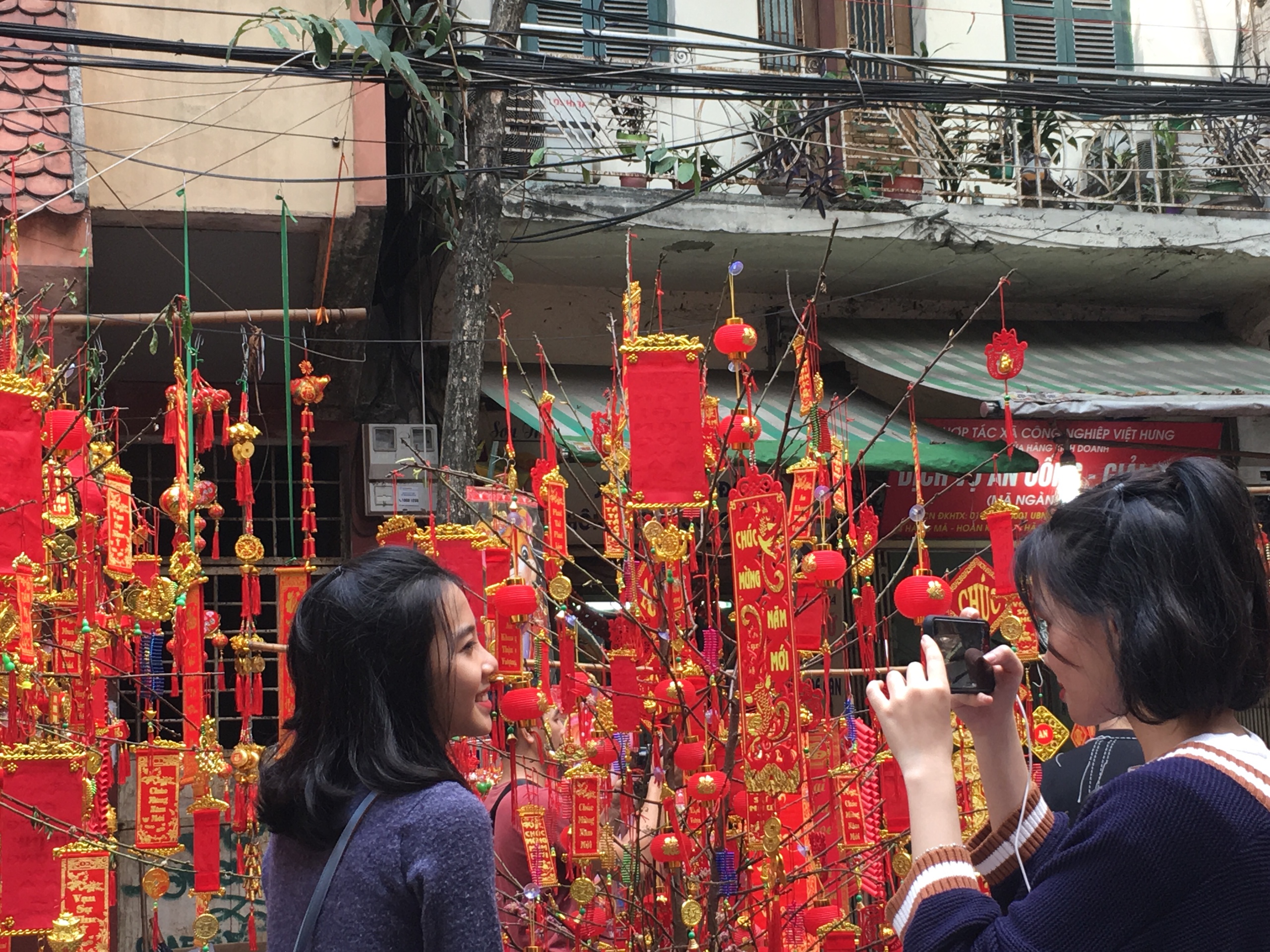 Vẻ đẹp rực rõ làm cho những du khách nước ngoài không khỏi ngạc nhiên và thích thú. Các sản phẩm đèn lồng, câu đối, chữ tài, chữ lộc,...đều tô sắc đỏ và được làm ra một cách khá độc đáo, thể hiện được những nét truyền thống Tết Việt.