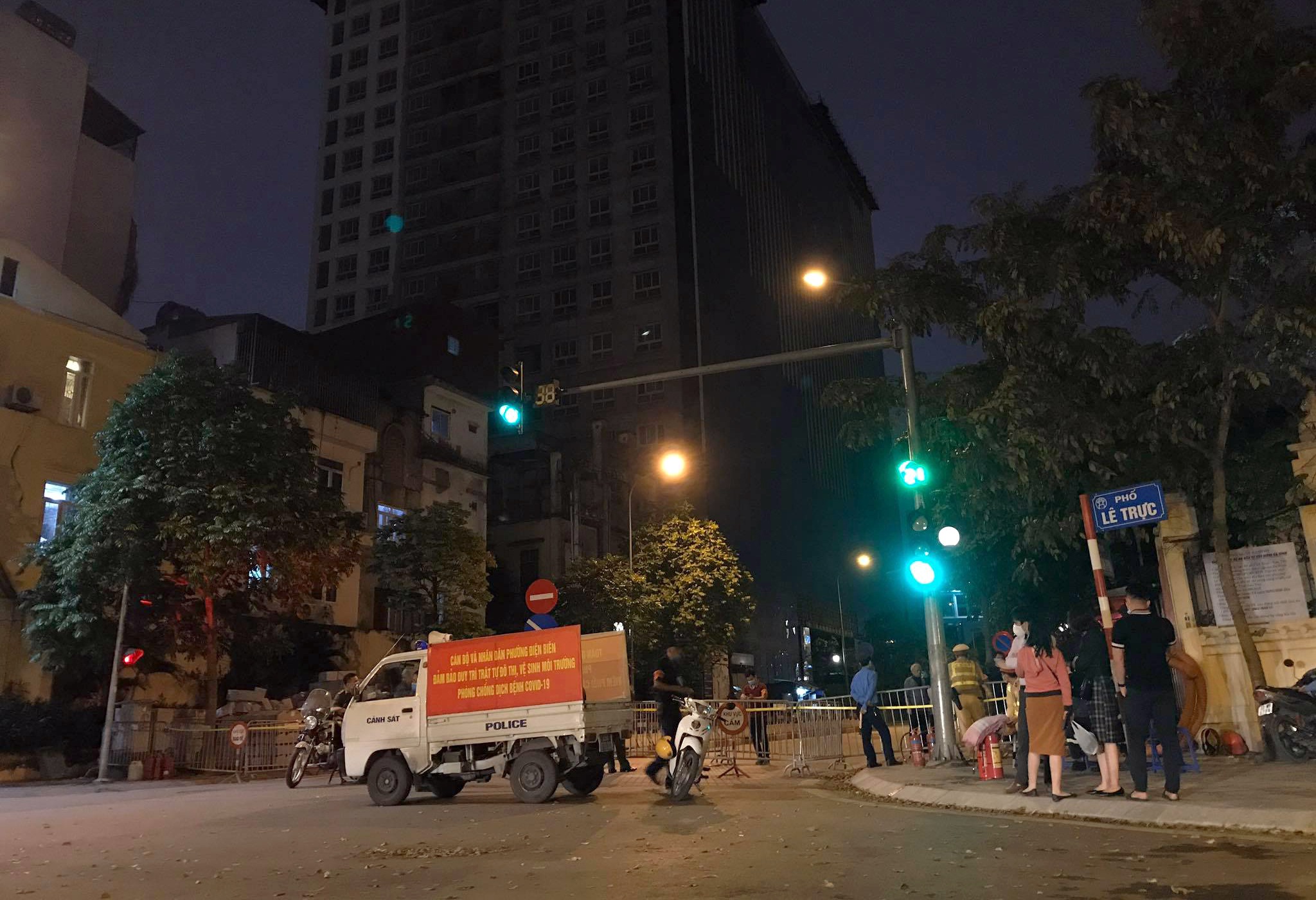 Chiều tối ngày 22/4, nhiều người dân lưu thông qua khu vực tòa nhà 8B Lê Trực bất ngờ với việc toàn bộ tuyến đường Trần Phú dài gần 200 m bị lực lượng chức năng rào chắn, cấm hoàn toàn phương tiện giao thông qua lại.
