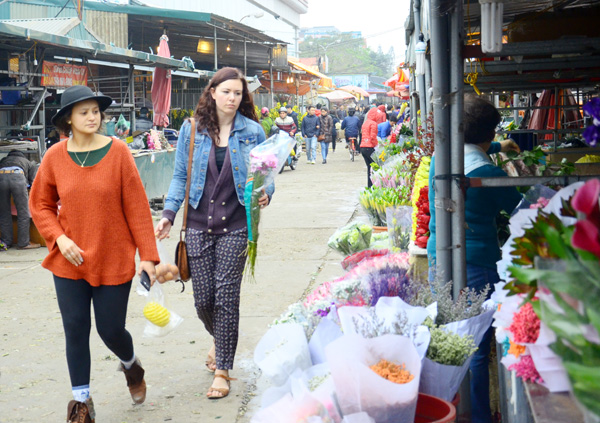 Du khách nước ngoài cũng thích thú với nét đẹp chợ hoa ở Hà Nội