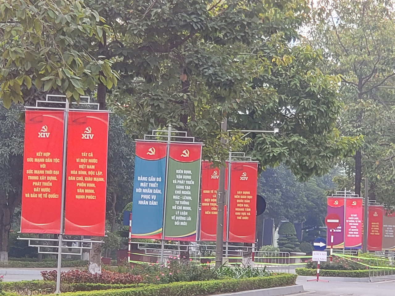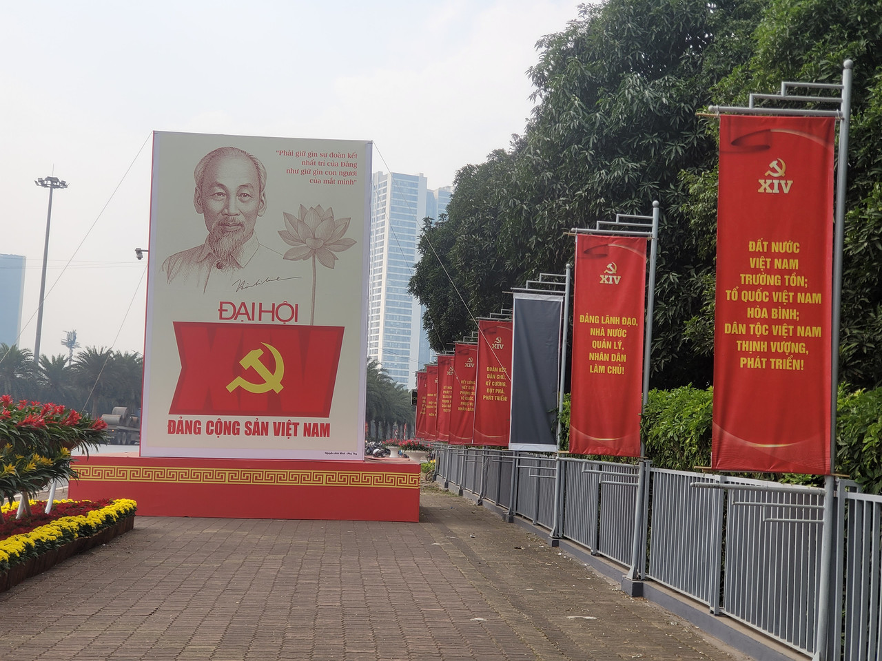 Đường phố Thủ đô Hà Nội được trang hòa rực rỡ với cờ, hoa, pano, áp phích, khẩu hiệu chào mừng Đại hội đại biểu toàn quốc lần thứ XIV của Đảng