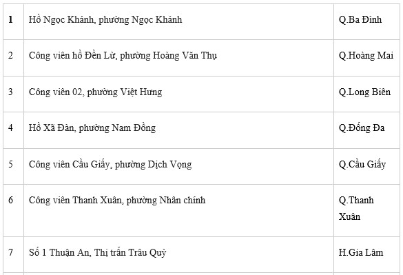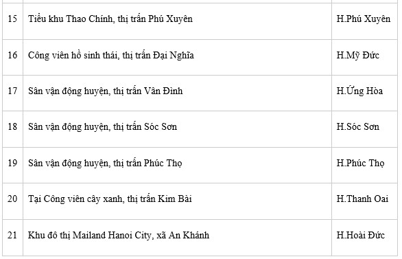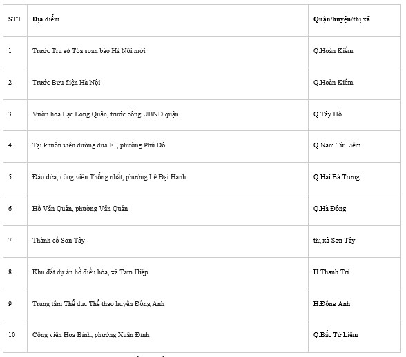 Danh sách 21 trận địa bắn pháo hoa tầm thấp.