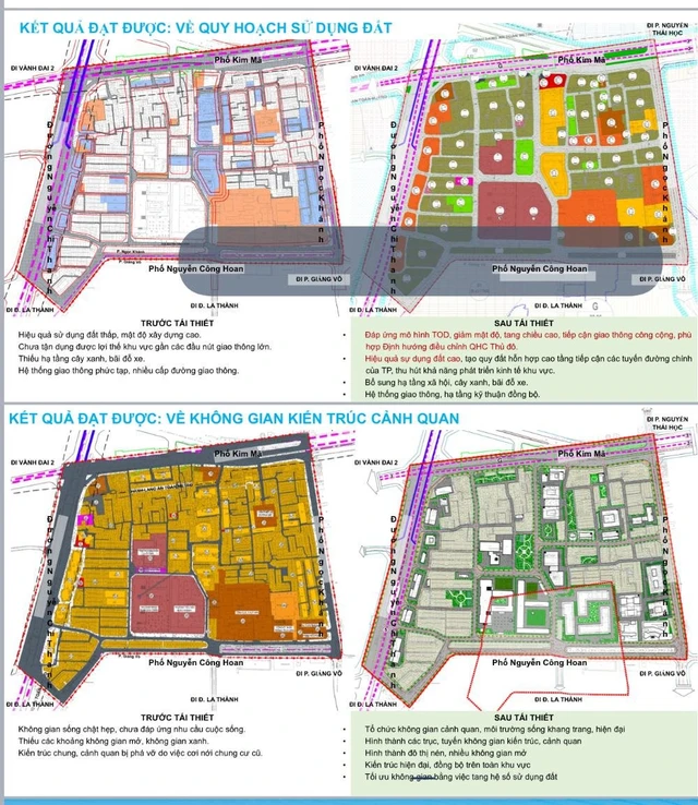 Bản đồ quy hoạch trước và sau khi tái thiết (Ảnh: Trang thông tin điện tử phường Ngọc Khánh).
