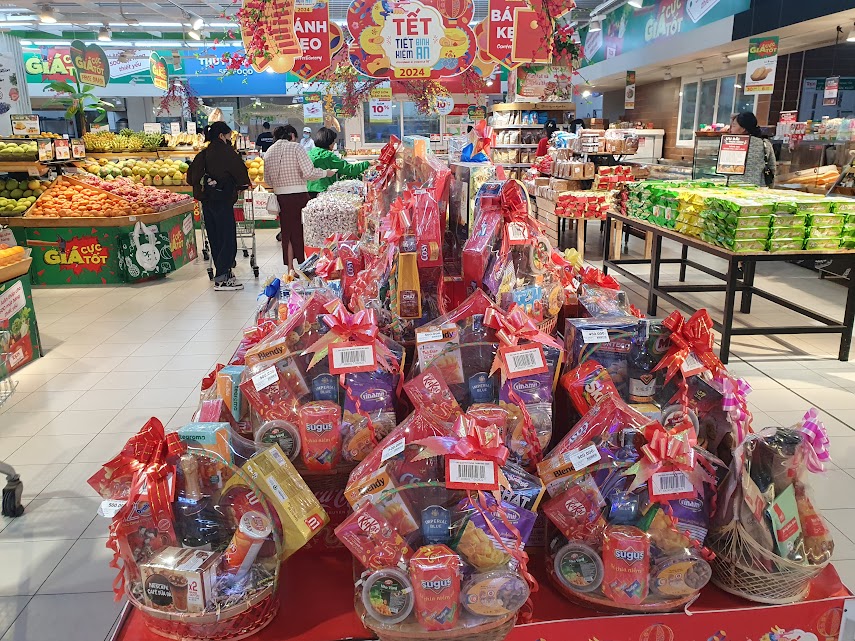 Những ngày này, các siêu thị và tiểu thương các chợ đã chuẩn bị nguồn hàng cho dịp tết Nguyên đán 2024 (Ảnh: Lộc Hà)