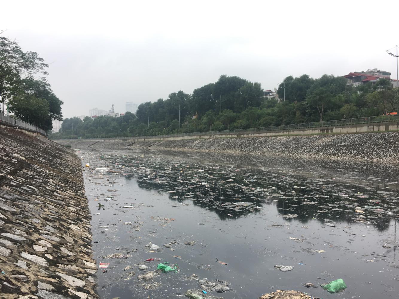 Nước thải từ các nhà máy và khu dân cư lân cận thải trực tiếp ra khu vực sông Tô Lịch khiến dòng nước bốc mùi hôi thối nồng nặc.