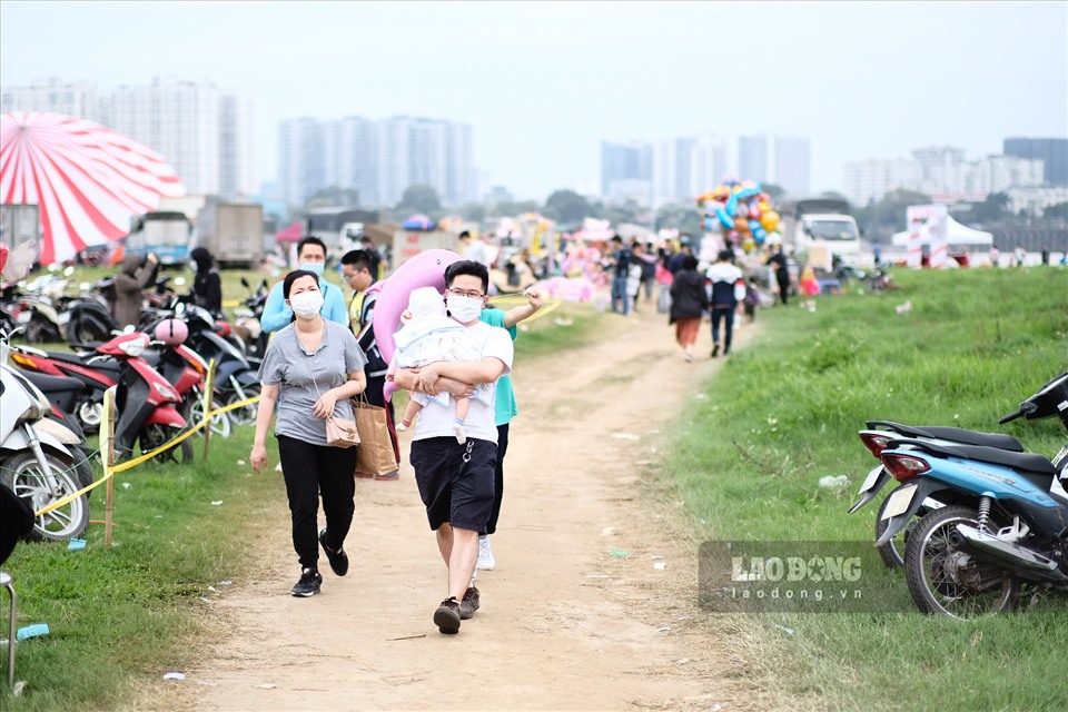 Nhiều người dân đã mua vé (giá 50.000 đồng/người) để vào bên trong từ sáng sớm với hi vọng được tham gia trải nghiệm bay cùng khinh khí cầu, thế nhưng khinh khí cầu tạm dừng khiến họ cảm thấy hụt hẫng. Ảnh: Lao động.