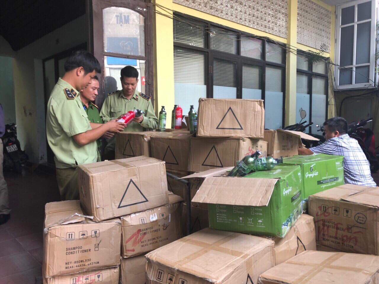 Qua kiểm tra phát hiện tại cơ sở đang kinh doanh 2331 chai dầu gội đầu và dầu xả các loại gồm: 810 chai dầu gội đầu Graperfruit loại 850 ml/chai, 840 chai dầu xả tóc Graperfruit loại 850 ml/chai, 210 chai dầu gội đầu Mefaso loại 850 ml/chai, 264 chai dầu gội đầu Tigi loại 750 ml/chai, 192 chai dầu xả tóc Tigi loại 750 ml/chai, 15 chai dầu gội đầu Collagen loại 785 ml/chai. Toàn bộ số hàng hóa trên do nước ngoài sản xuất không có hóa đơn chứng từ chứng minh nguồn gốc hợp pháp.