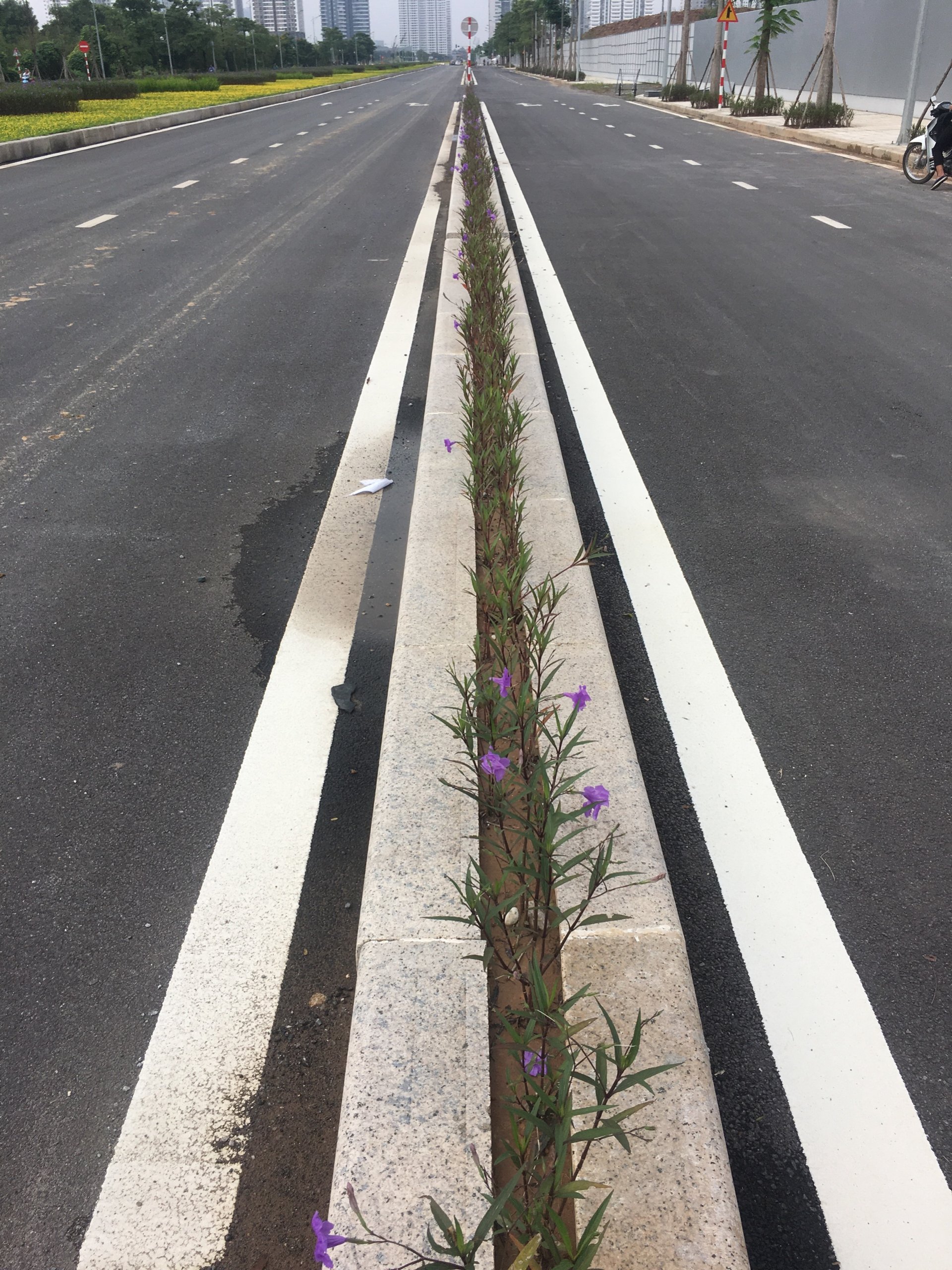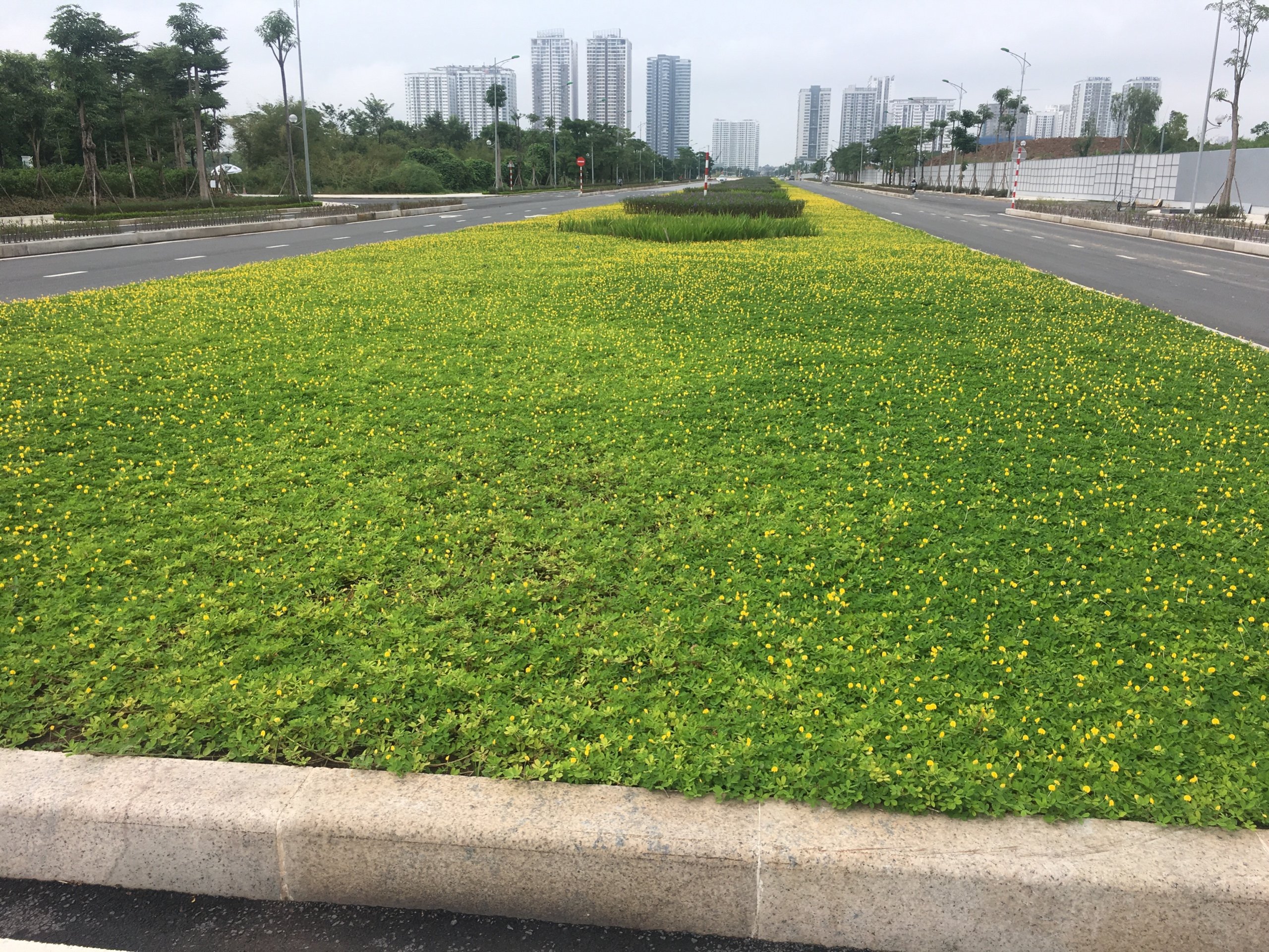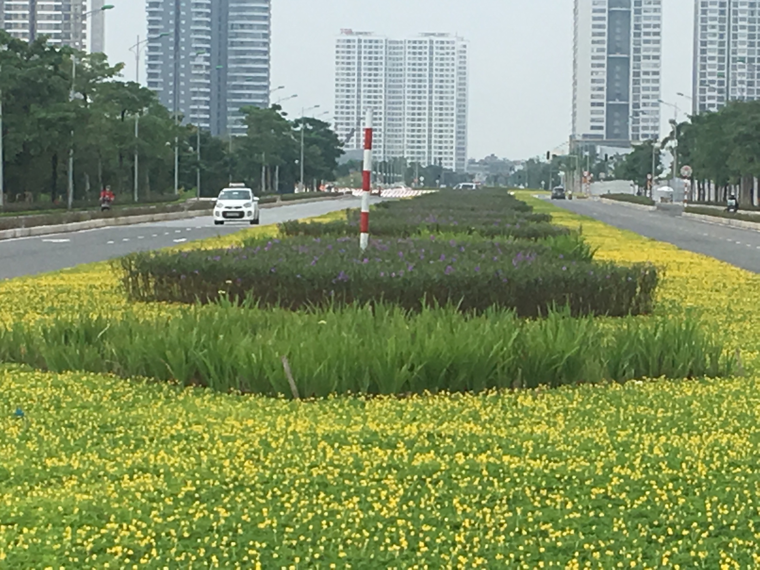 Dải phân cách giữa 2 chiều đi của tuyến đường rộng 5m được trồng hoa, trải thảm cỏ. Chính vì thế, đây có thể được coi là con đường đẹp nhất của thủ đô khi mặt đường rộng và thoáng cùng với nét đẹp của hoa vàng, cỏ xanh.