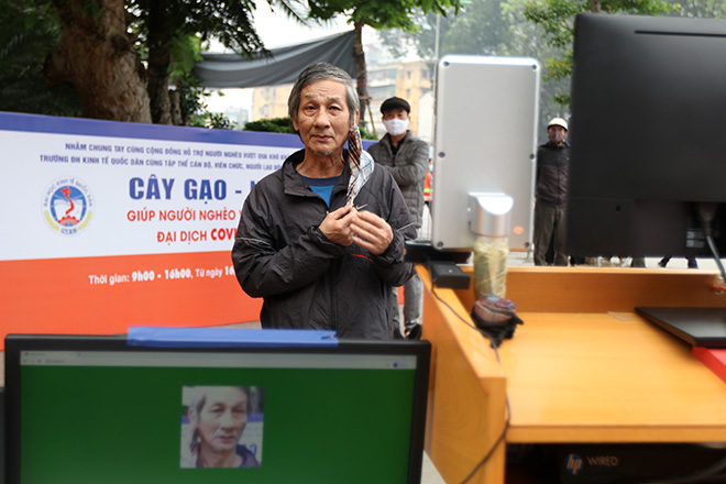 “Kinh phí để tạo nên hoạt động này là do đóng góp của cán bộ giảng của nhà trường đã đóng góp 1 tháng tiền ăn trưa. Thực hiện chỉ thị 16 của Thủ tướng NEU đã đóng góp được số tiền đáng kể và được hỗ trõ rất nhiệt tình cảu UBND quận Hai Bà Trưng, UBND phường Đồng Tâm. Bà con đến, chỉ cần nói họ, tên hệ thống sẽ nhận diện gương mặt và ghi lại để đảm bảo nguyên tắc trong một tuần bà con sẽ không quay lại lấy lần nữa.”