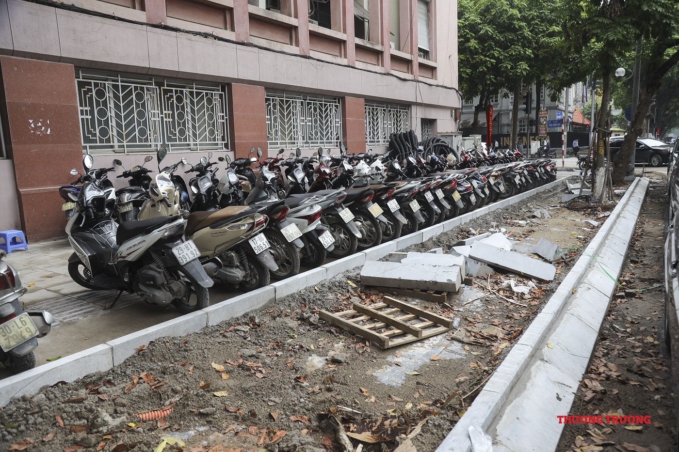 Vỉa hè cứ cải tạo, lát đá đến đâu, xe máy, ô tô lại đậu đến đó, có trường hợp đỗ xe vào cả phần nền mới san gạt của công nhân.