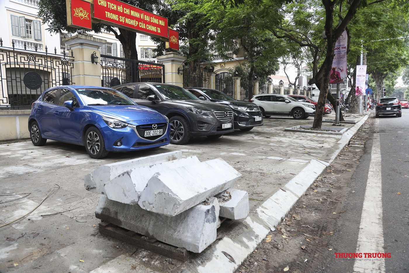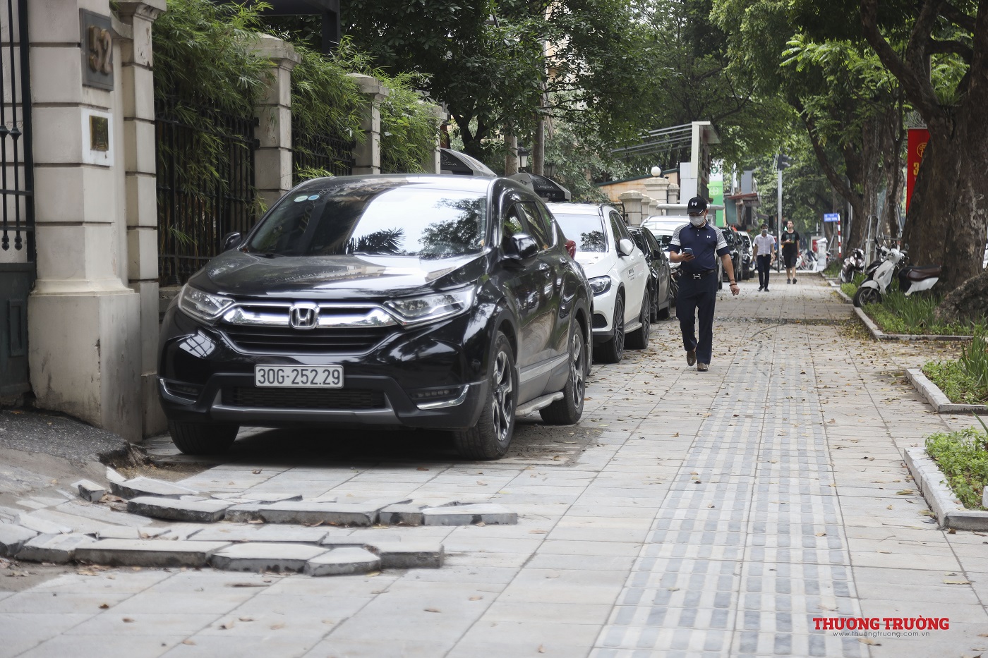 Nhiều tuyến phố tại quận Hoàn Kiếm như Trần Hưng Đạo, Ngô Quyền, Hai Bà Trưng... dù đang trong quá trình cải tạo, thay mới đá vỉa hè, vẫn còn ngổn ngang gạch đá nhưng thời gian qua, hàng loạt các phương tiện, đặc biệt là ô tô đã ngang nhiên đỗ đè lên.