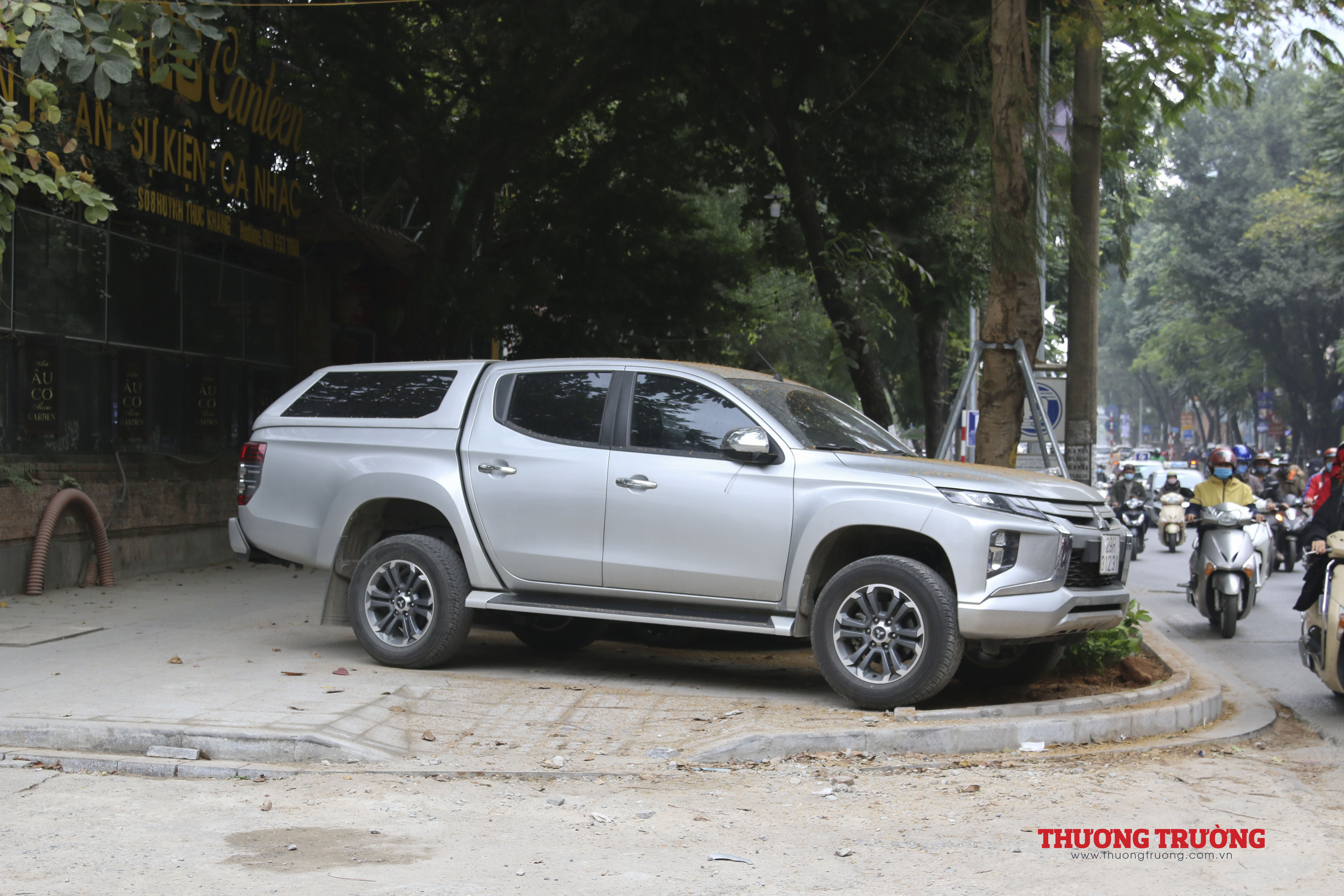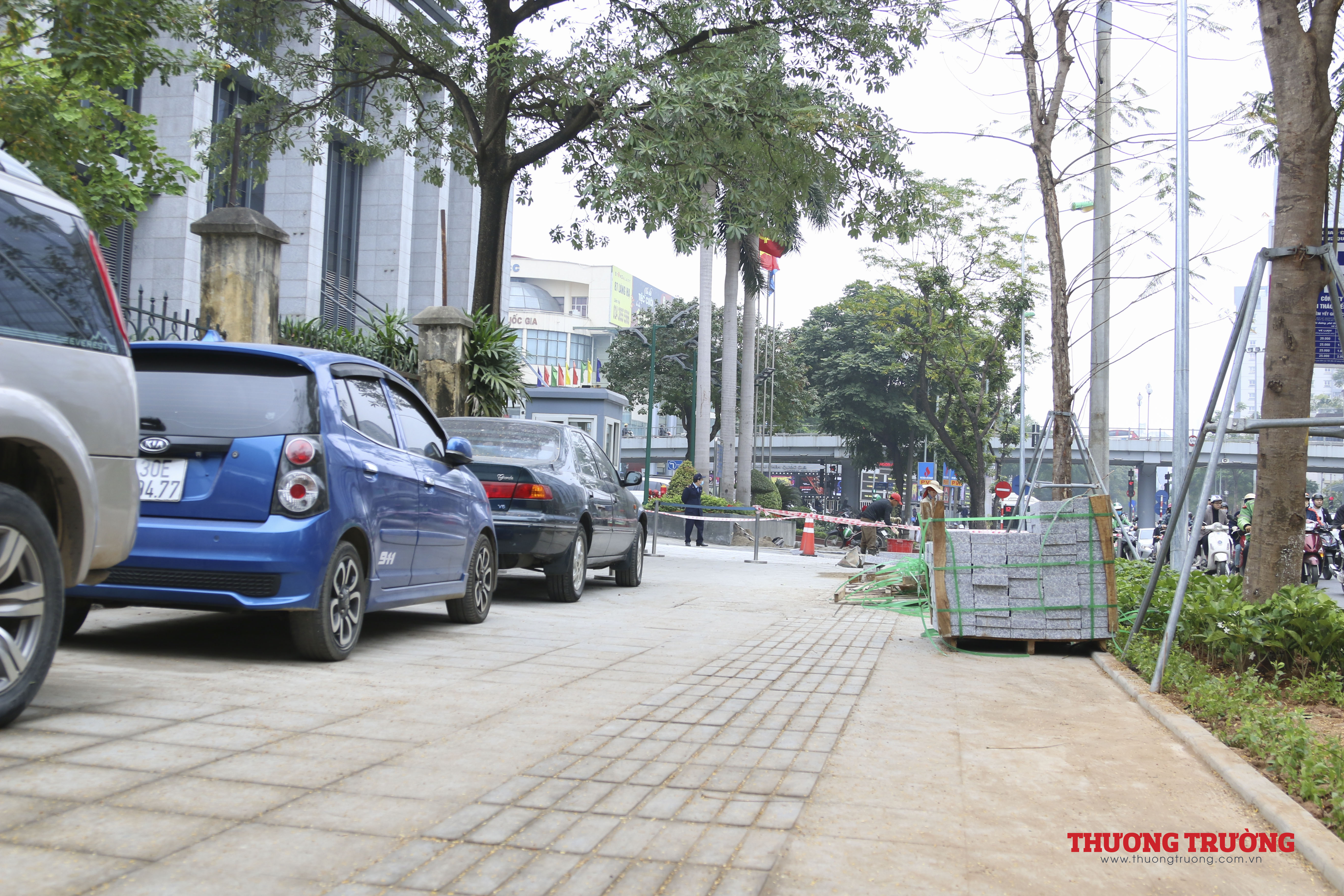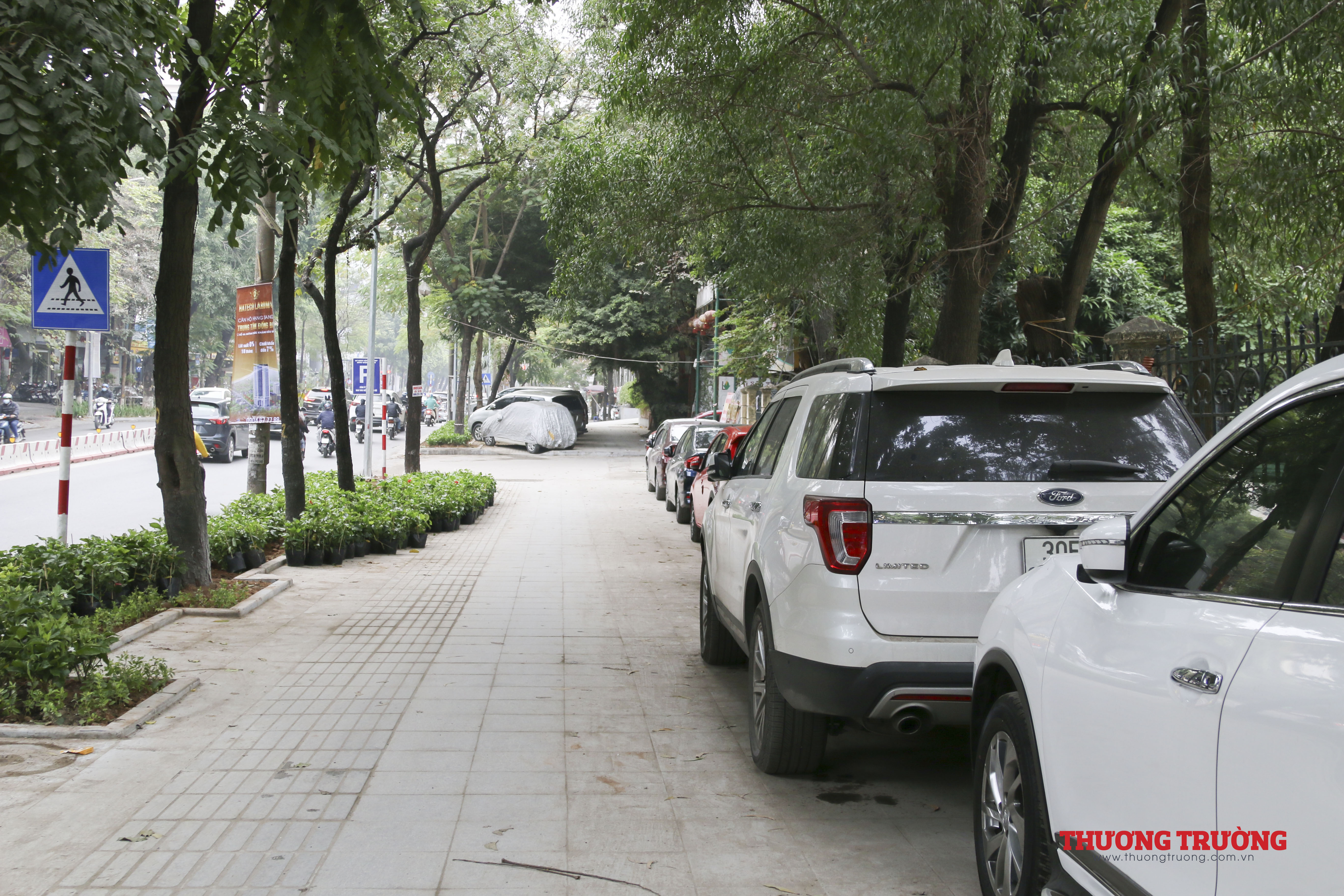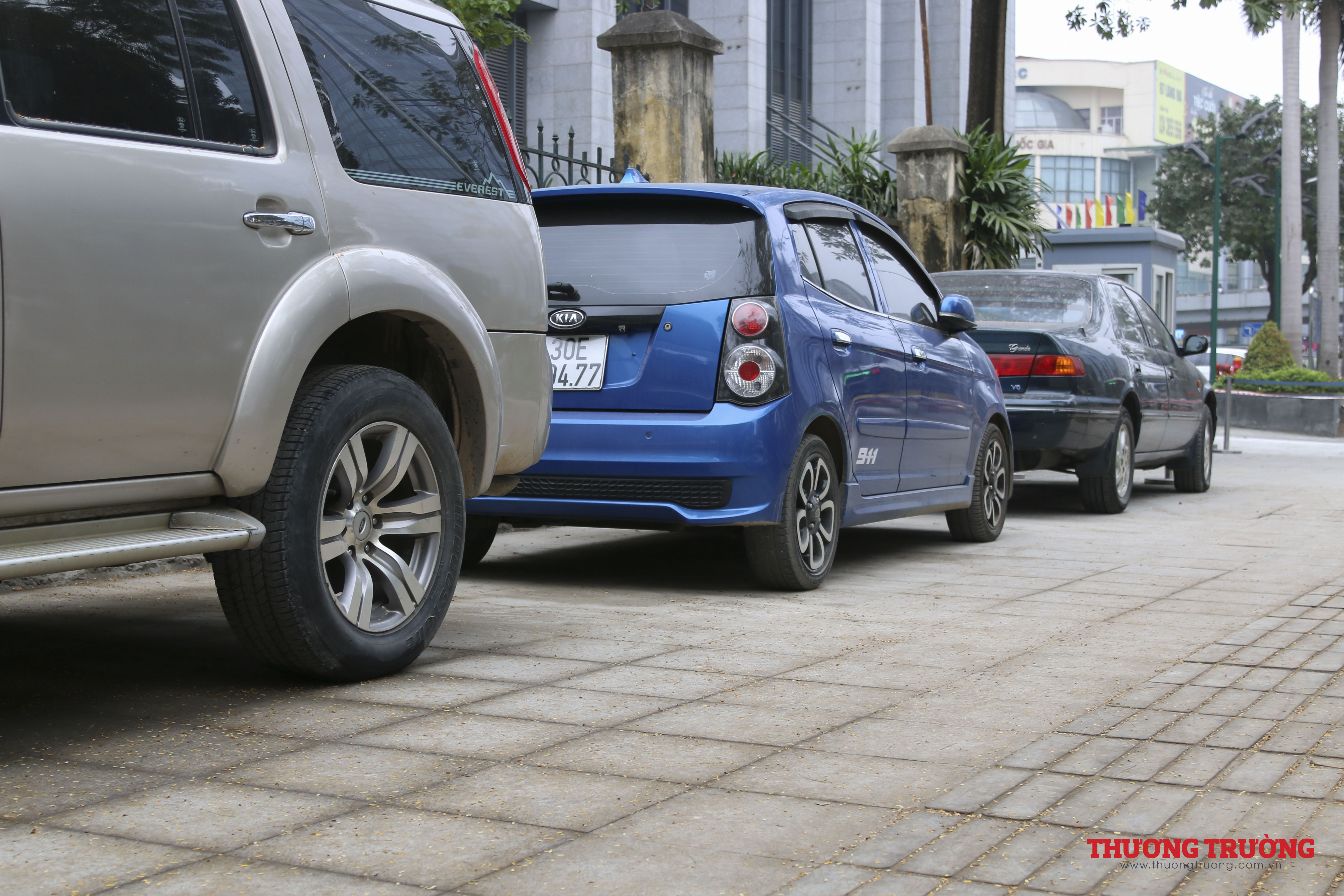 Những chiếc ô tô "chễm trệ" đỗ trên vỉa hè vừa lát.