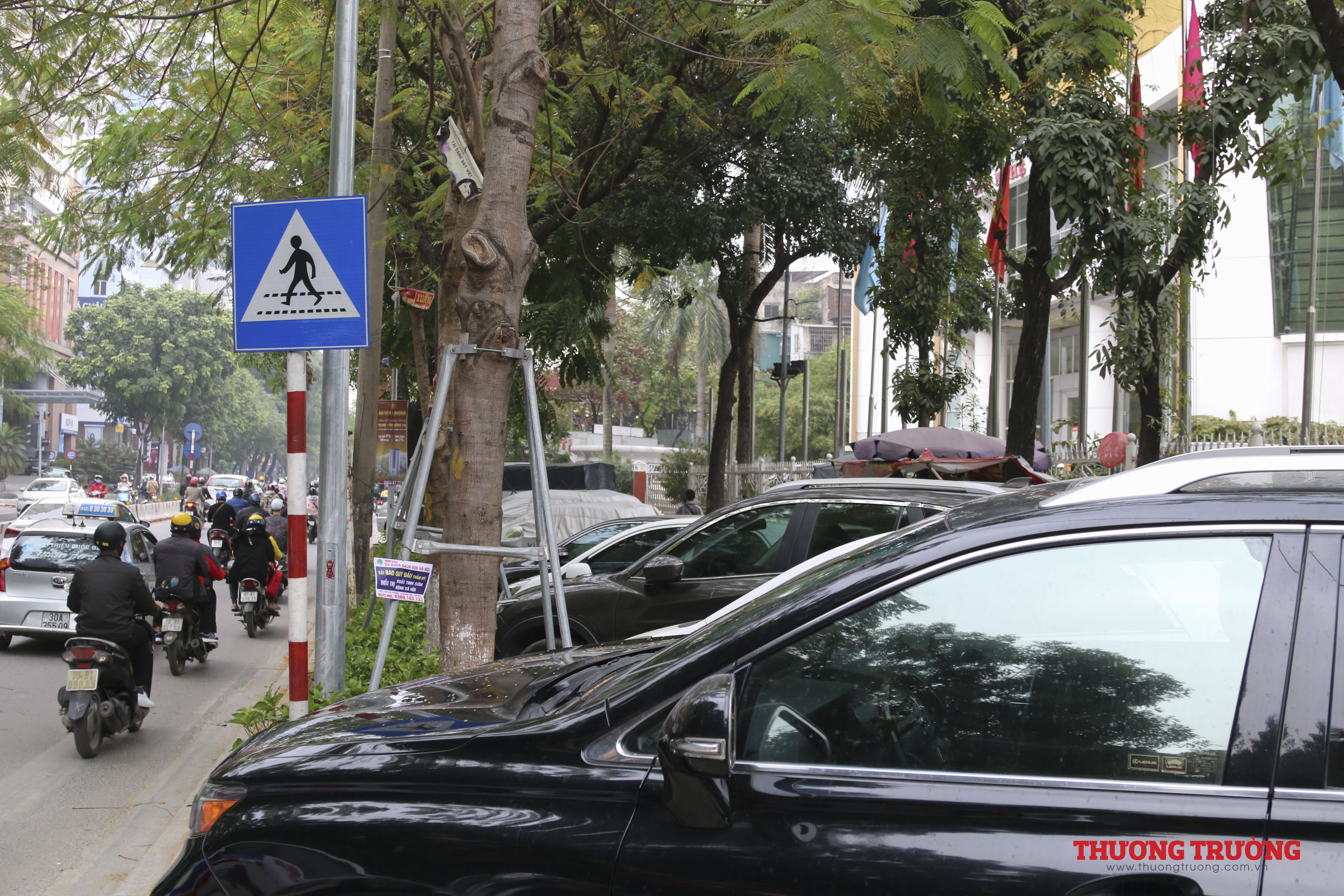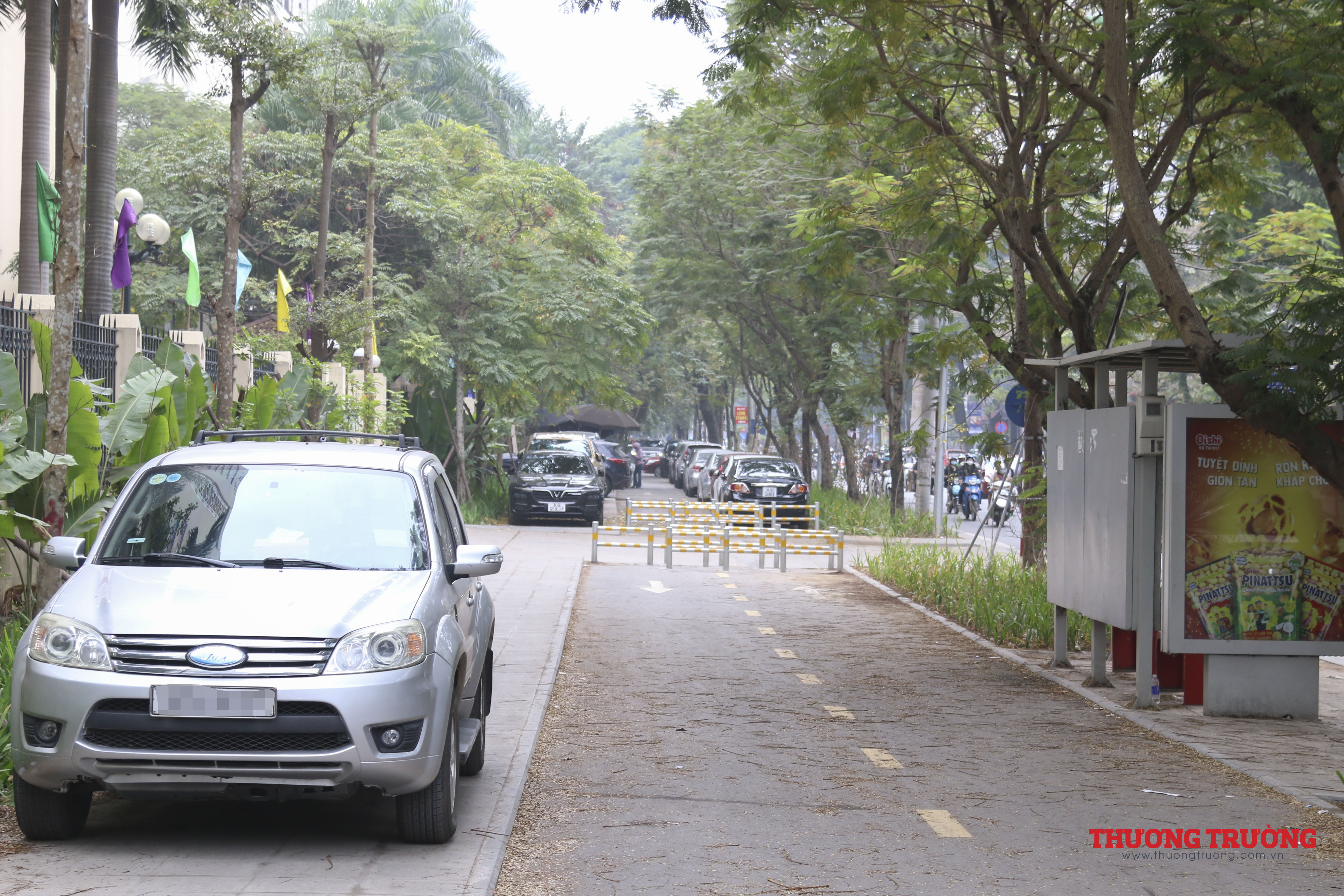 Theo thiết kế trước đó, đoạn vỉa hè trên tuyến phố Huỳnh Thúc Kháng (trước cổng Sở Tài Nguyên và Môi trường Hà Nội và Chi cục Văn thư lưu trữ) chỉ dành cho người đi bộ. Vì vậy, một đầu vỉa hè đã được lực lượng chức năng làm rào chắn bằng thép kiên cố.